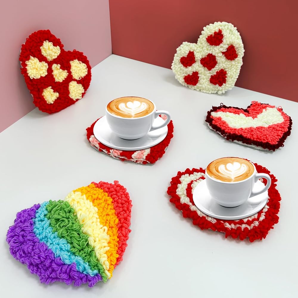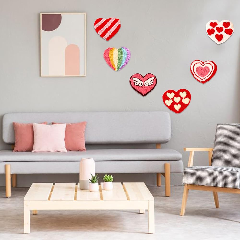You Will Get: 6*Different Love Patterns, Embroidery Hoop, Punch Needle Tool, Yarns, Adhesive Felt, Instruction.