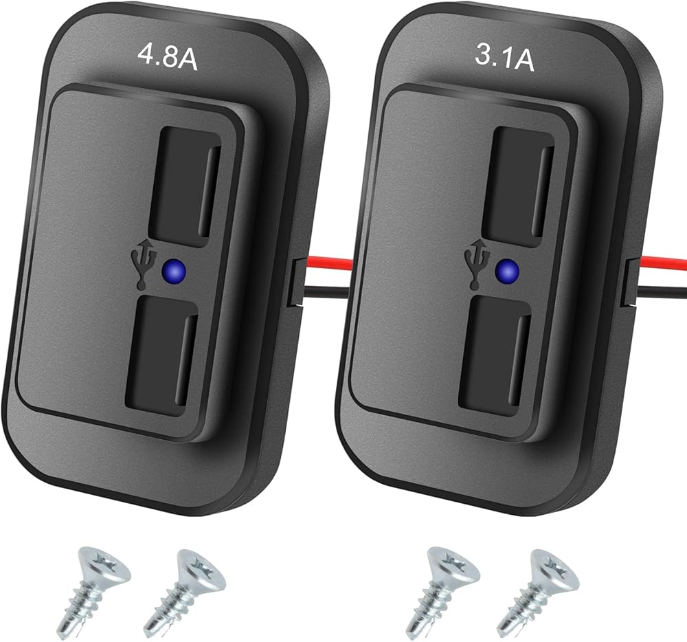 With Spring Cap Dual USB Dual Port - Dual 12V USB Outlet has two fast charging ports, which is faster than conventional chargers. Suitable for all popular USB devices. Applies to Cars, Motorcycle, Bus,Camper, Boat, etc.(3.1A&4.8A)