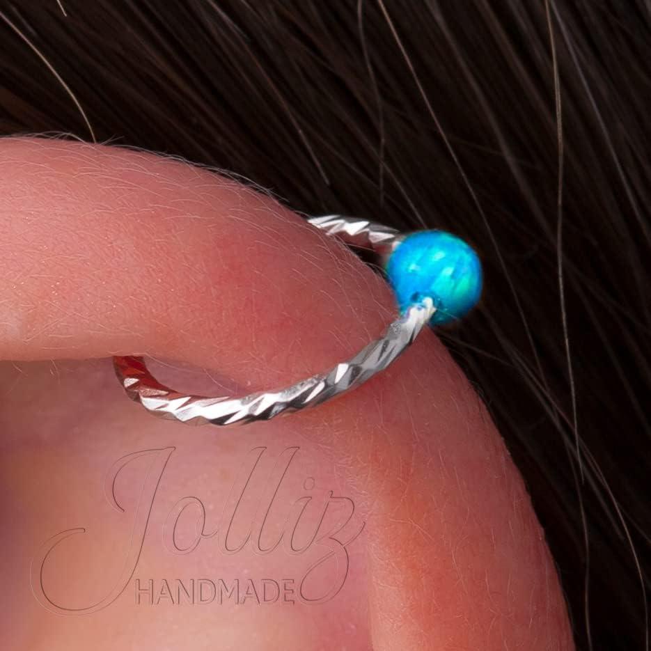 🙌 MULTIPLE USAGE: This small helix ring hoop is thin and dainty, and can be used as earring hoops, nose rings, lip rings, cartilage rings, septum rings, belly button ring, eyebrow hoop, nose studs, tragus piercing, etc. Our opal nose hoop for women is simple and elegant for daily jewelry. Can be used while bathing, swimming, exercising, and more. Easy to open and close.