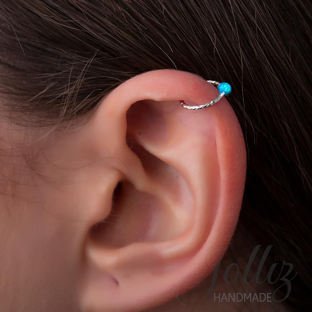 📏 MEASUREMENT: Inner diameter is 8mm, wire thickness, is 20G gauge, and hand polished with a pink opal; for more sizes & gauge helix rings hoops please visit the store.