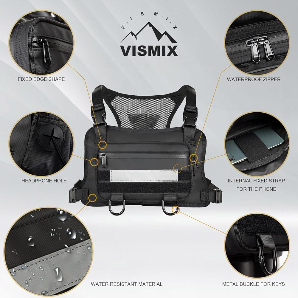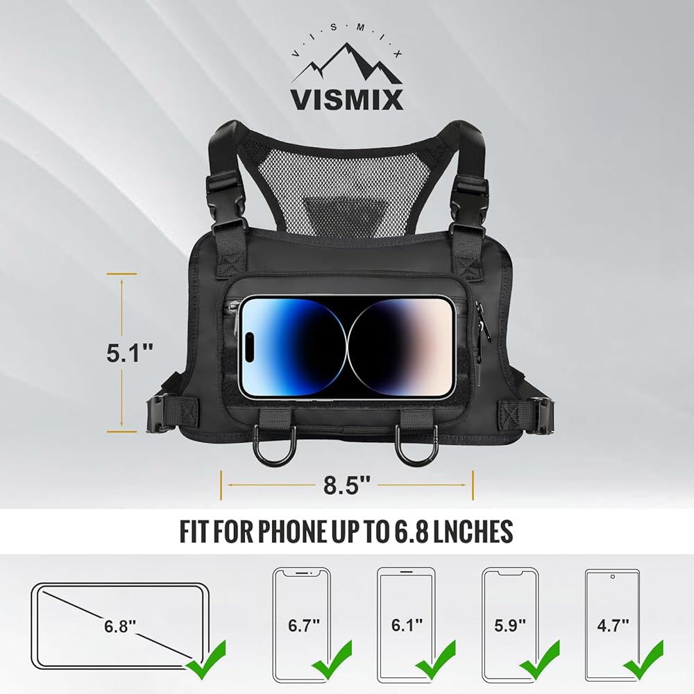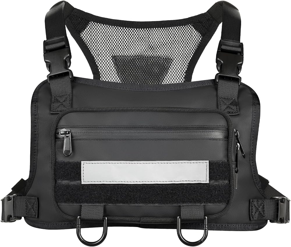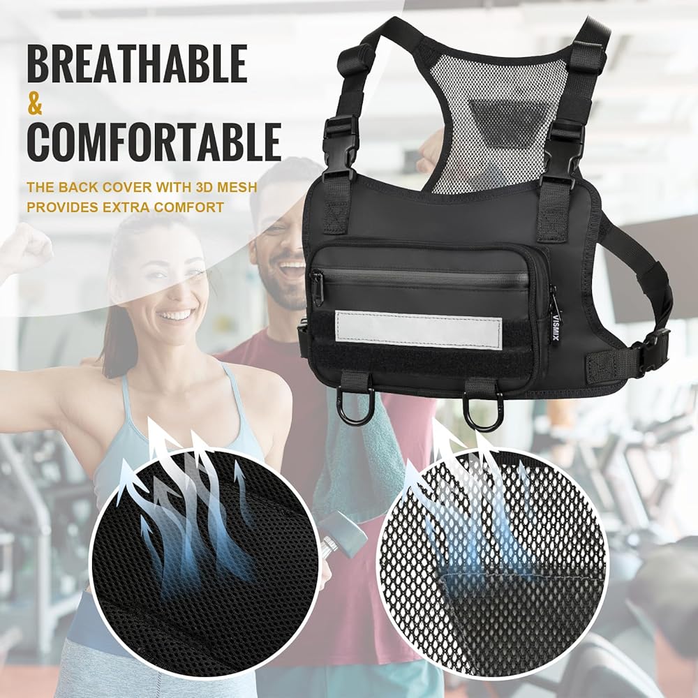 UNIQUE DESIGN: Main zipper pocket for phone and wallet , outer zipper pocket for cards and keys. Made of premium quality fabric and smooth sturdy zippers. The Material used for this chest pack is Water Resistant and Anti-Scratch Nylon, You will keep your item dry and safe from rainy day or sharp tools. With fully adjustable straps that will fit your body perfectly. Breathable back mesh makes you feel cool and comfortable.