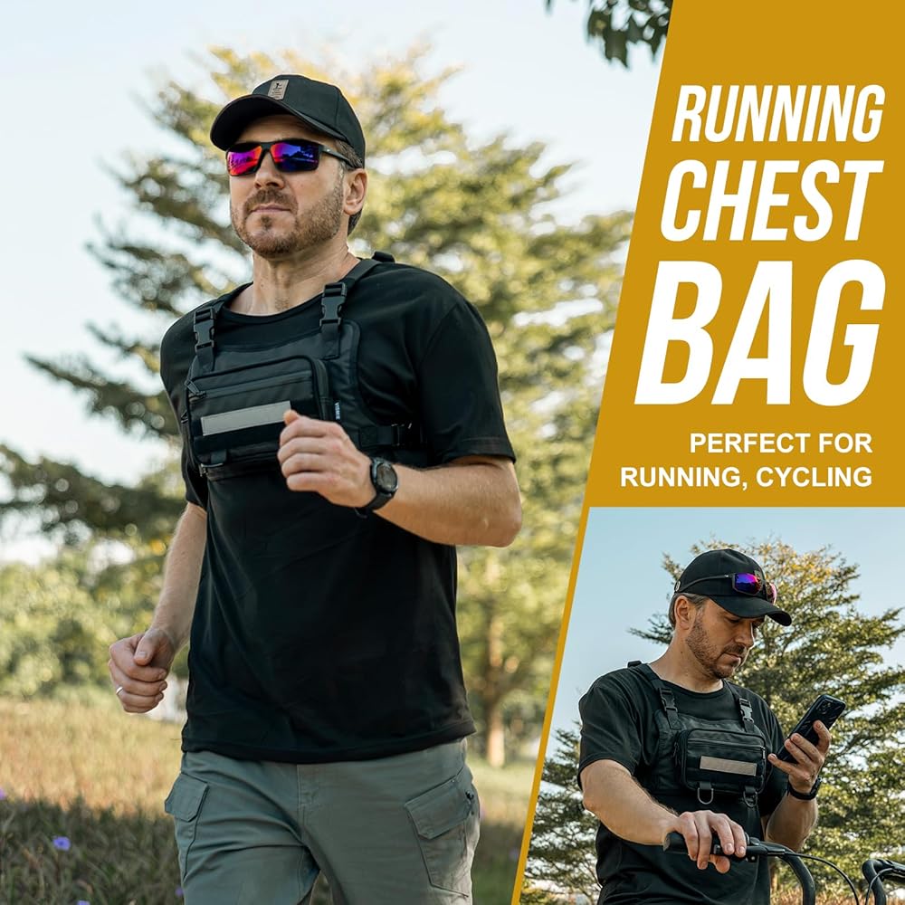 PROFESSIONAL RUNNING CHEST PACK : Perfect Chest Bag Size 8.46*5.12*1.77 in, it is a sports fashion chest pack, this size is perfect to hold all your daily items. Suitable for keeping your phone, earbuds, wallet and more with you while walking around the park or a vigorous workout at the gym.