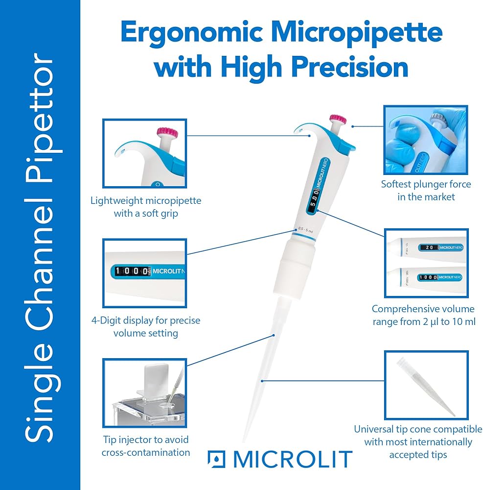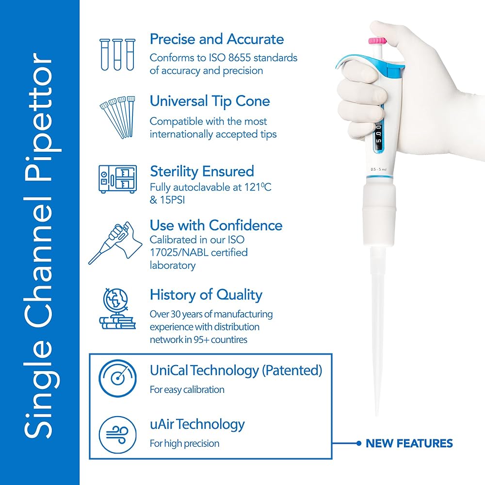 نتائج دقيقة وموثوقة - ماصة الميكرولتر الخاصة بنا قابلة للتعقيم بالكامل عند درجة حرارة 121 درجة مئوية و15 رطل لكل بوصة مربعة من الضغط لمدة لا تقل عن 15 دقيقة. تضمن هذه الأداة المختبرية أقصى قدر من النظافة لتطبيقات المختبرات الهشة.