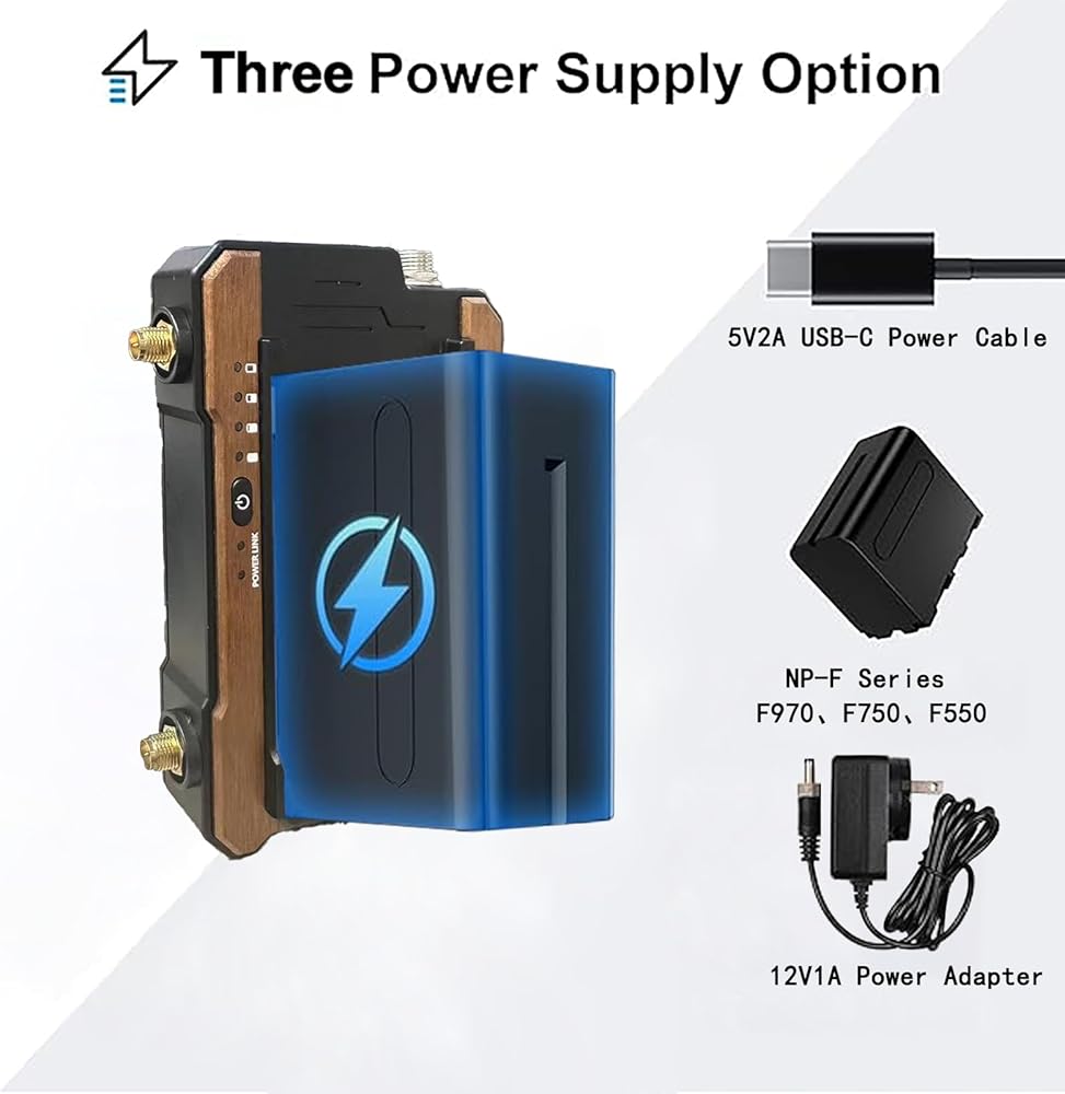 😊【Multiple Power Options/Plug & Play】This Wireless Transmitter and Receiver supports 12V/1A DC power input, 5V/2A Type-C power input, and NP-F series battery(NPF970/NPF750/NPF550) input. Note: NP-F batteries are not included in the packaging. This 4K Wireless Transmitter and Receiver are pre-paired,no apps required,plug&play