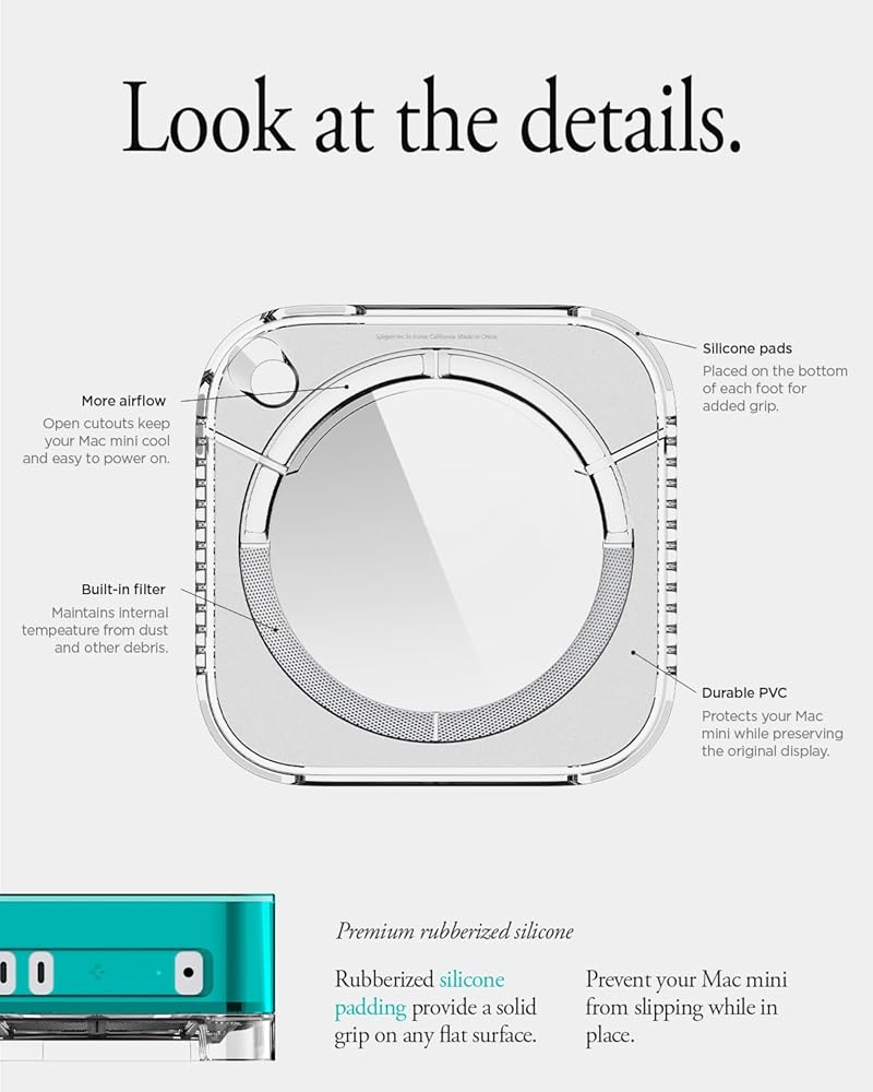 - Rubberized silicone padding gives the Mac Studio a non-slip grip.