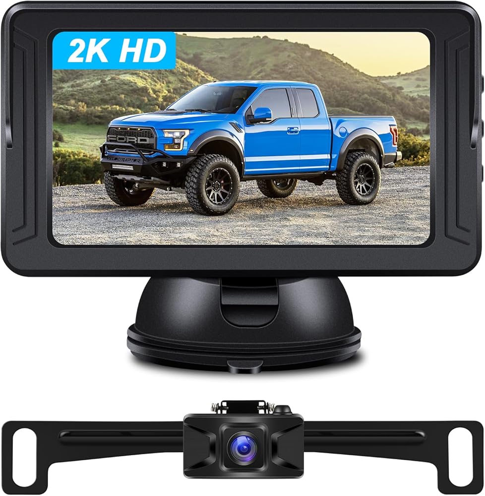 Backup Camera for Car 5 Inch HD 2K Back Up Camera for Cars Truck w Super Night Vision 150 Degrees Wide Angle DIY Guide Lines IP69 Waterproof Rear View Camera with Monitor, Plug & Play