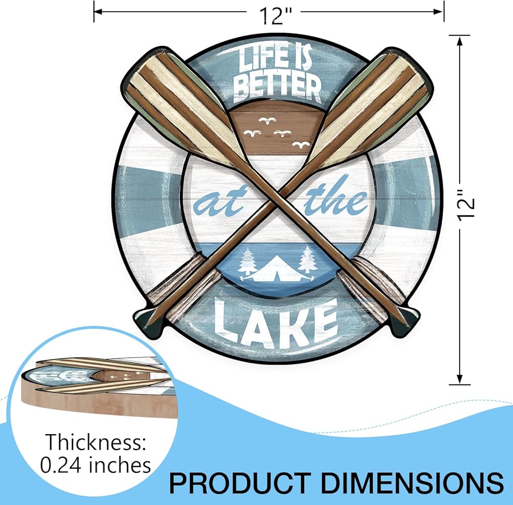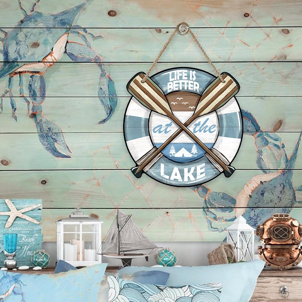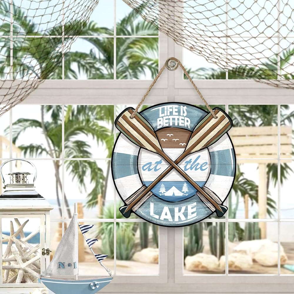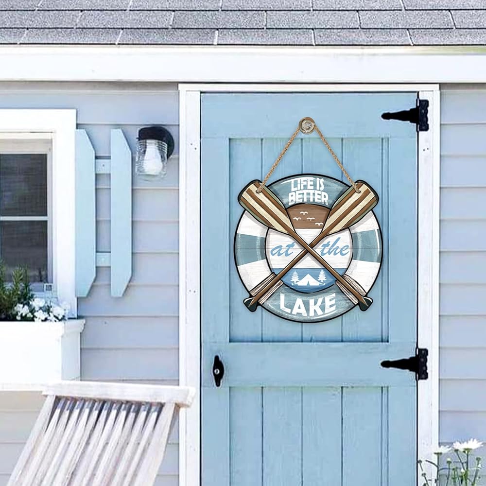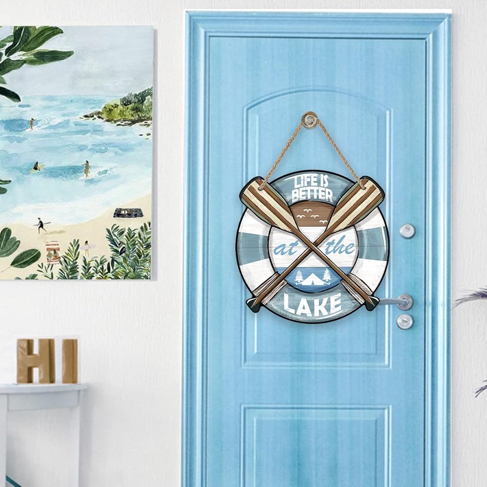 Unique Design: Our spring summer door pediment design is unique and beautiful. The words of "life is better at the lake" and boat, paddles lake house, seagulls patterns are printed on the wooden board, which is funny and cute. This farmhouse front door sign will bring more fun to your house and show the best welcome to your friends