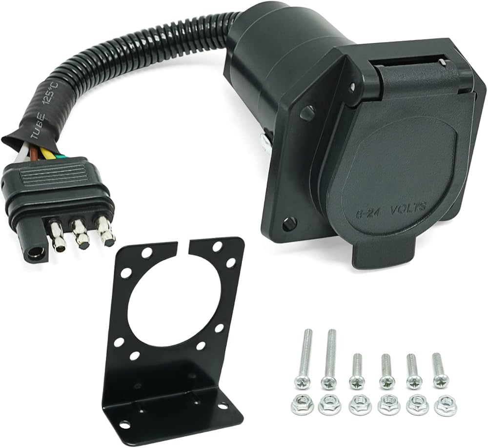 KMORET 4 pin to 7 pin Trailer Adapter converts the 4-way flat trailer connector on your vehicle to a 7-way RV-style connector.