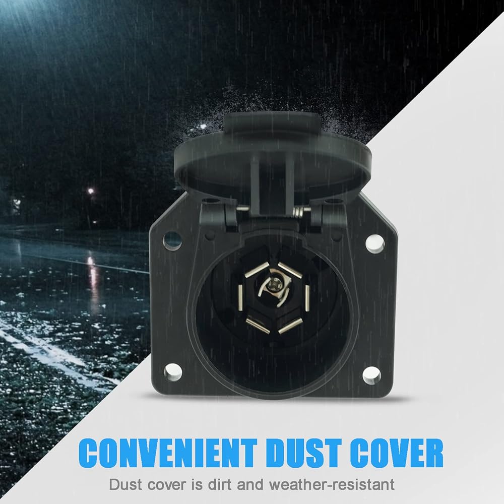 Dustproof Cover: Flexible Spring-loaded Dust Covers of the 4 way flat to 7 pin round trailer adapter keep connectors from moisture and debris when not in use.