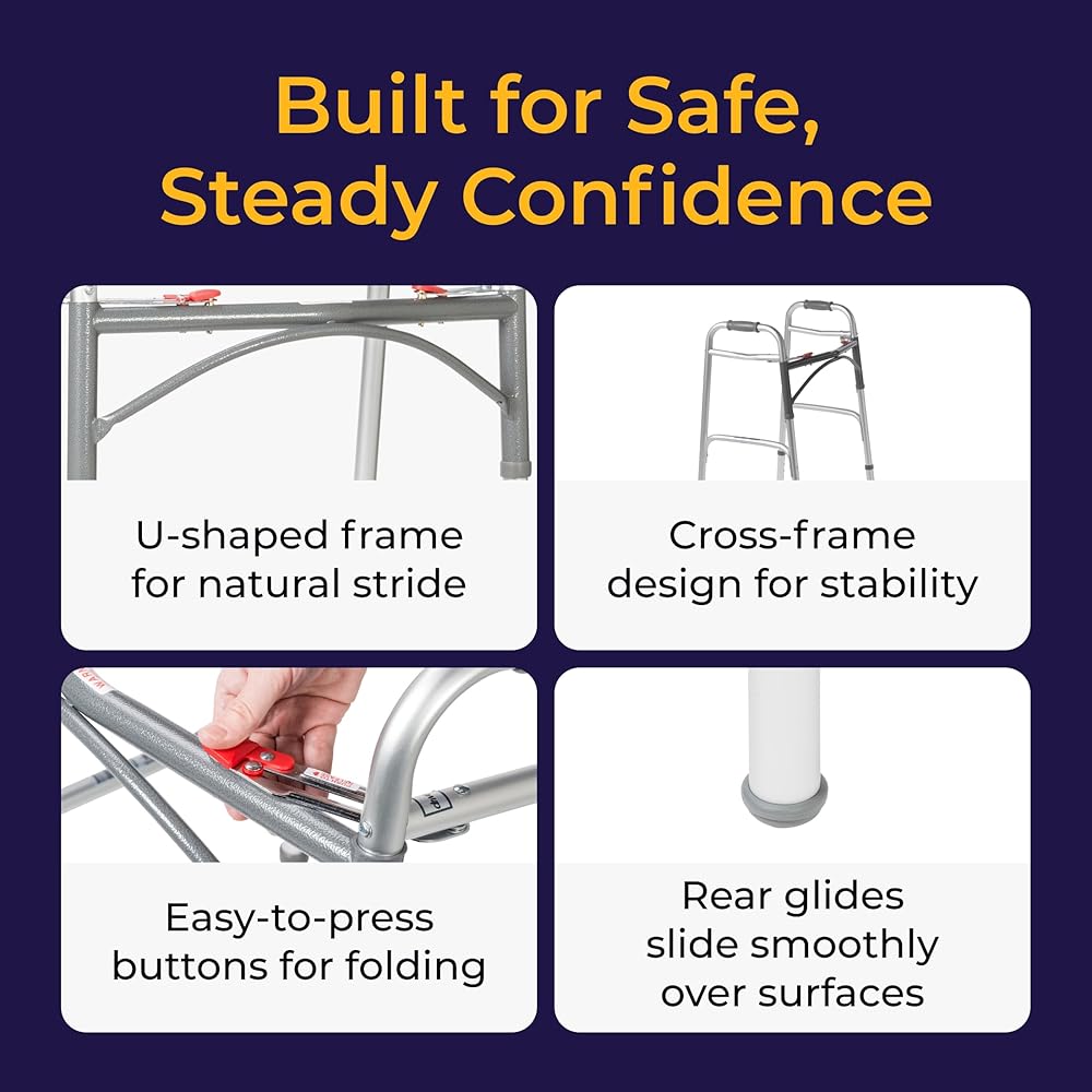 Quality Construction: Constructed from sturdy aluminum, this adult walker offers maximum strength while remaining lightweight