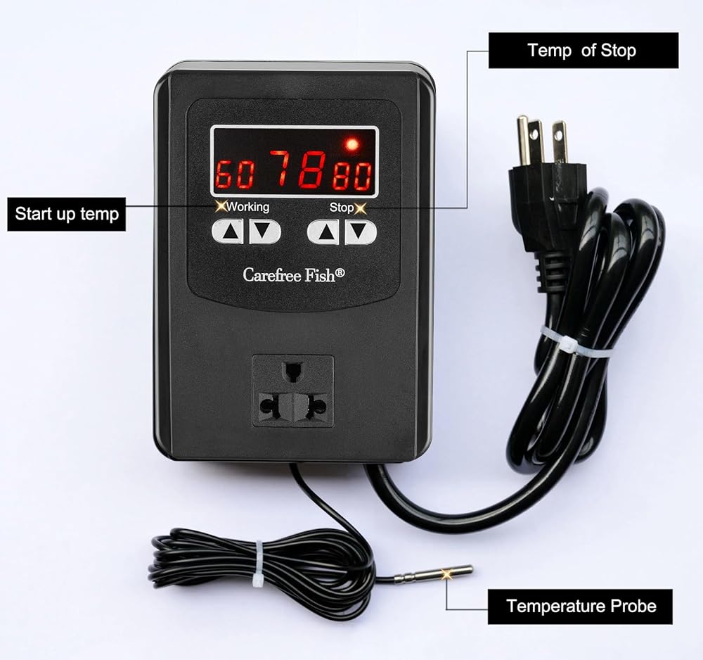 Carefree Fish 1200W Digital Temperature Controller Reptile Thermostat Controlled for Aquarium Cooling Fan and LED Light Lamp Fish Tank Heater Terrarium Heat Mat Snake Heating Pad Switch Freezer Fridge
