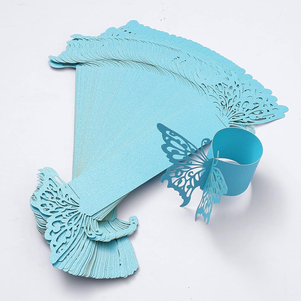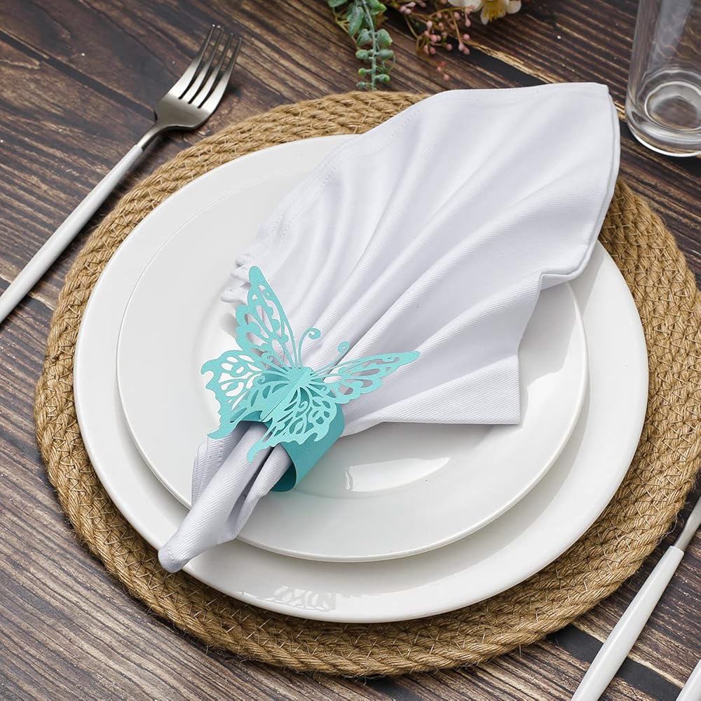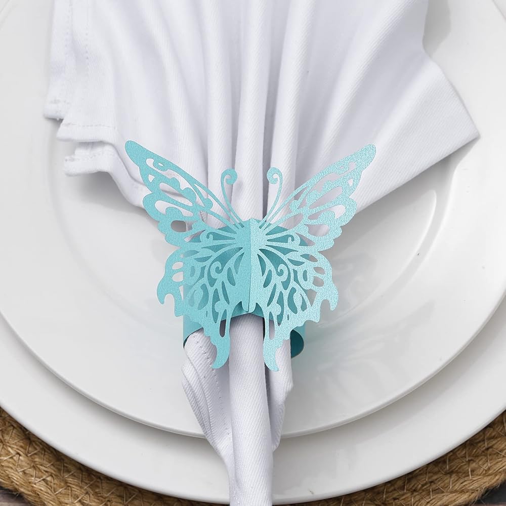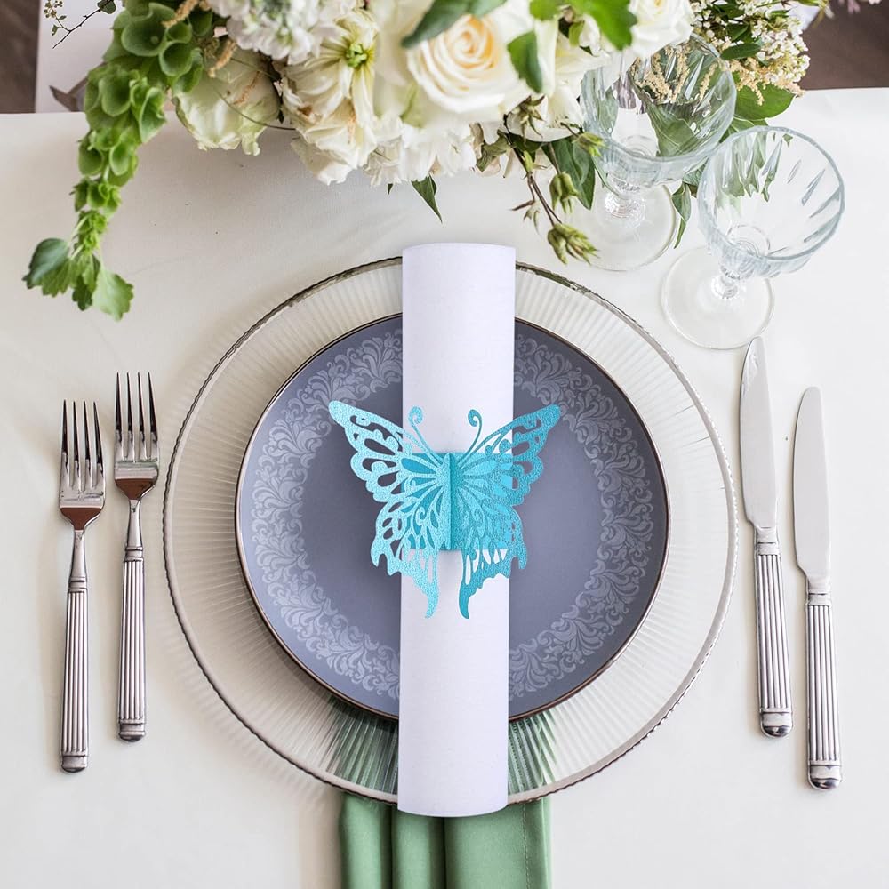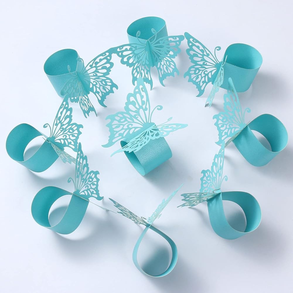 MORGIANA 3D Butterfly Napkin Ring Matt, 50pcs Disposable Paper Napkin Holders for Weddings Party Christmas Restaurant Table Decoration (Blue-Butterfly)