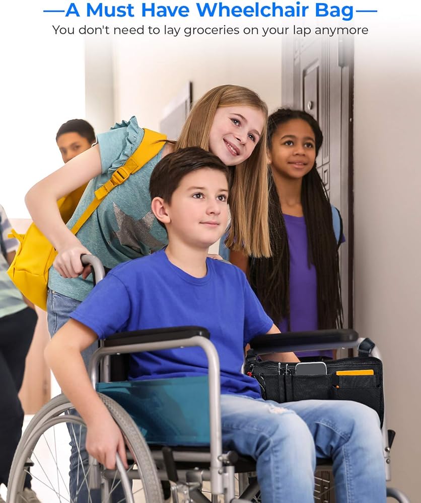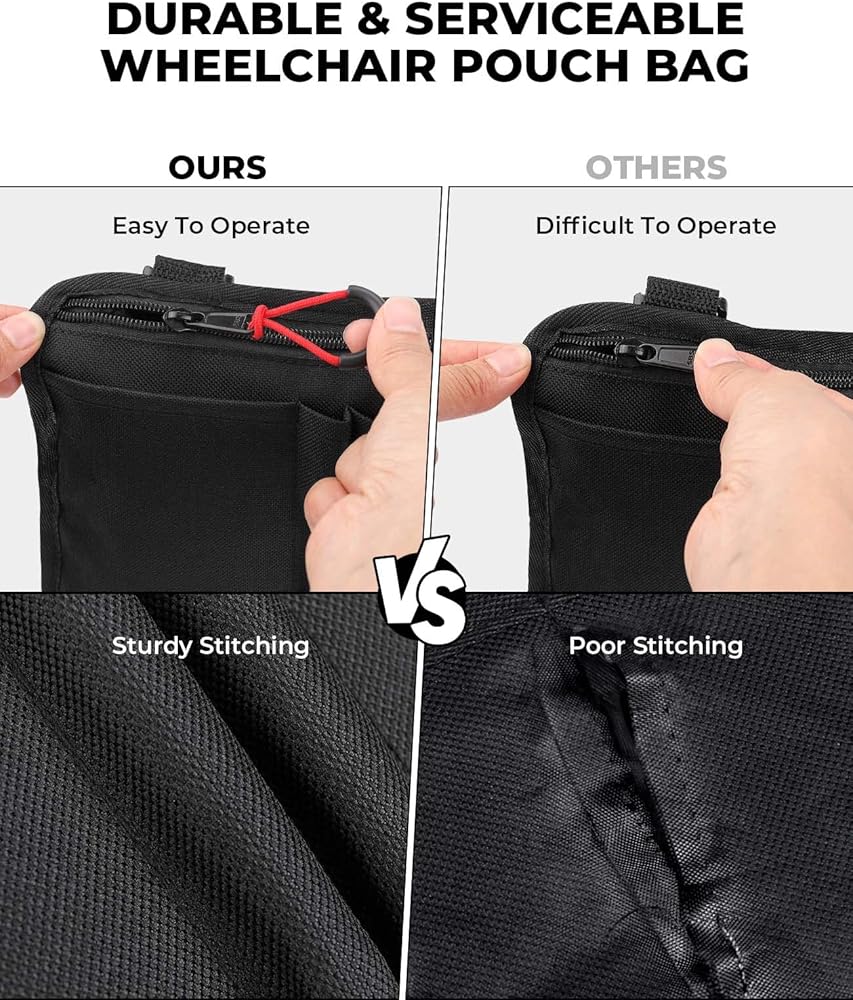 【Convenient and Easy to Attach】You can attach and remove the wheelchair accessories bag easily with the durable adjustable straps.