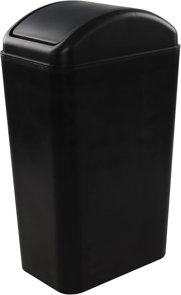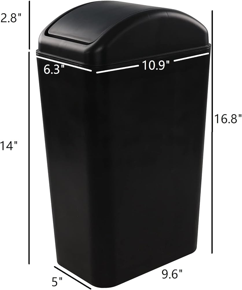 Farmoon 3.5 Gallon Slim Trash Can for Office Bedroom Bathroom, 14 L Small Swing Lid Garbage Bin, Black