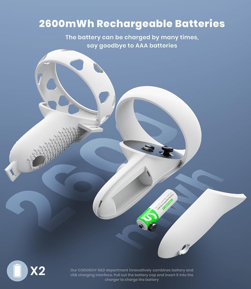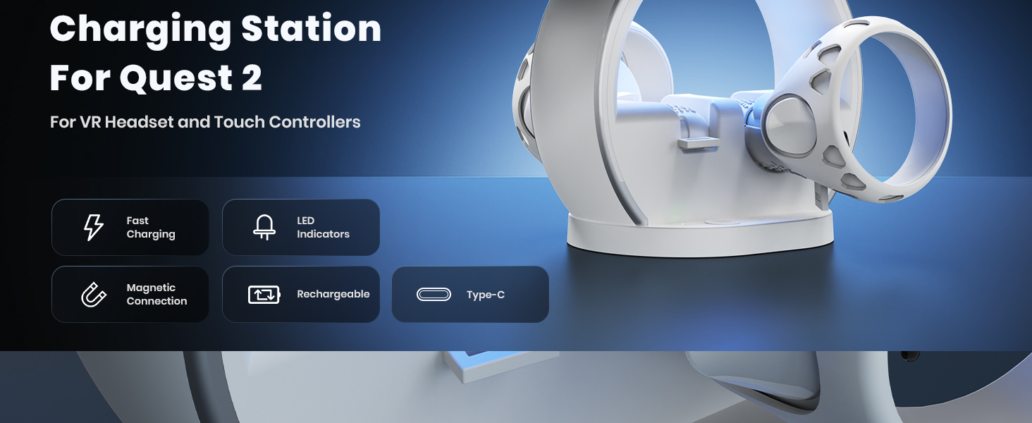 ⚡【Effortless Charging】-- Our charging stand is equipped with 2 magnetic charging heads, which can fully charge the headset in 3.5 hours and the controller in 2.5 hours. Rechargeable batteries and controller covers save you from endless replacement, saving you money.