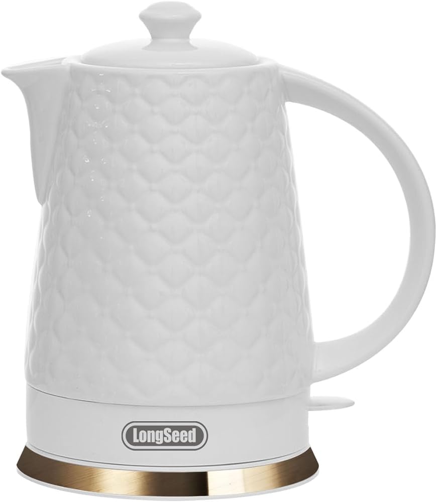 【CERAMIC ELECTRIC KETTLE】Features a simple on/off switch that triggers boiling with just one touch. With a generous 1.5L capacity and a powerful 1200W, this electric kettle ensures quick and efficient boiling.