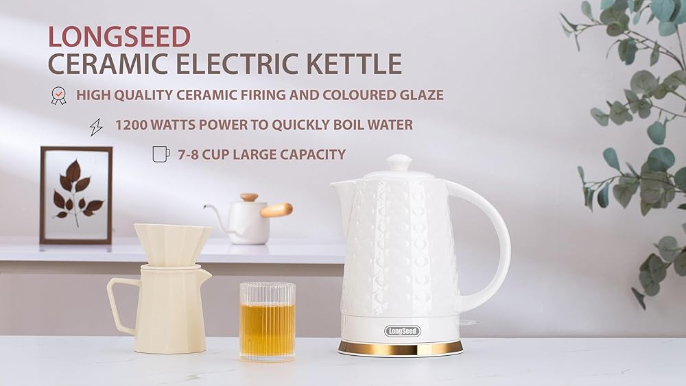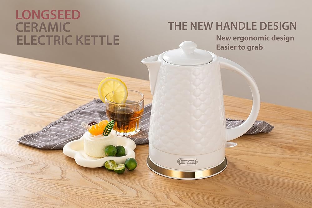 【EASY TO USE】All ceramic design, ensuring the purity of boiled water. The ergonomic handle provides a comfortable grip, and the lid opens effortlessly for hassle-free filling. This combination of safety and user-friendly design, safeguarding the appliance and enhancing user confidence.