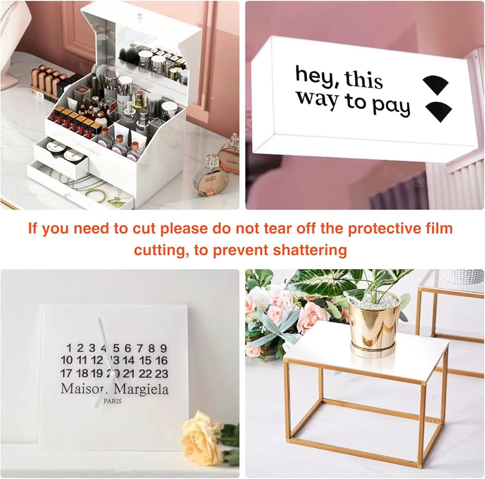 【Customer Service】 If you come across any issues while using our white acrylic sheets for any reason, please don't hesitate to reach out to us. We assure you that we will provide a complete refund or a free replacement without requiring you to return the item, regardless of how long it has been in use.