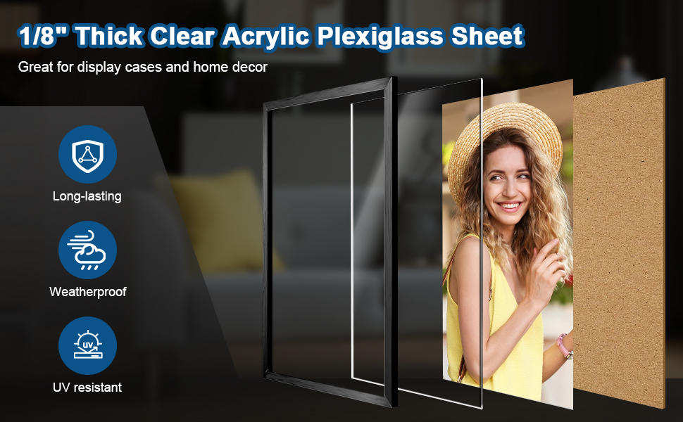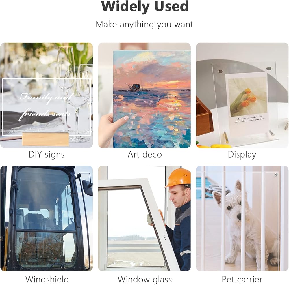 【DIY Craft Projects】Our acrylic plexiglass board is the best choice for your transparent creation, you can do any decoration, graffiti, and painting on it. Its transparency enriches your creative expression, no matter where it is placed, the scene wherever it goes will become its background. You can also make it into a photo frame, poster frame, wedding welcome sign and home decoration, etc