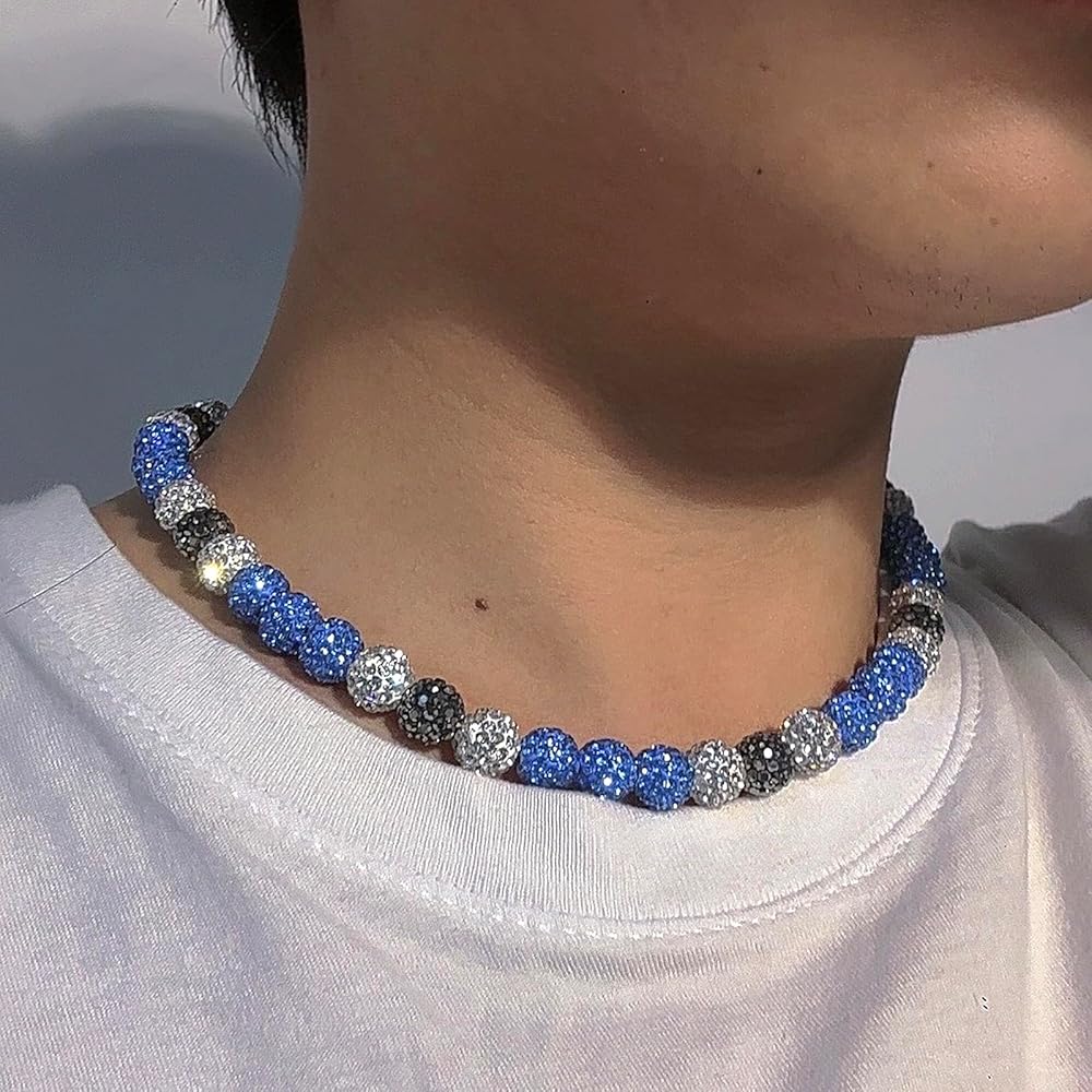 Baseball Necklace handmade of 43 pcs polymer clay ball full of rhinestone ,bling and sparky.