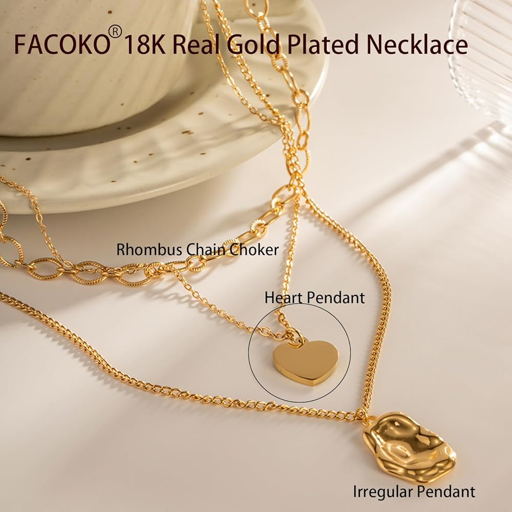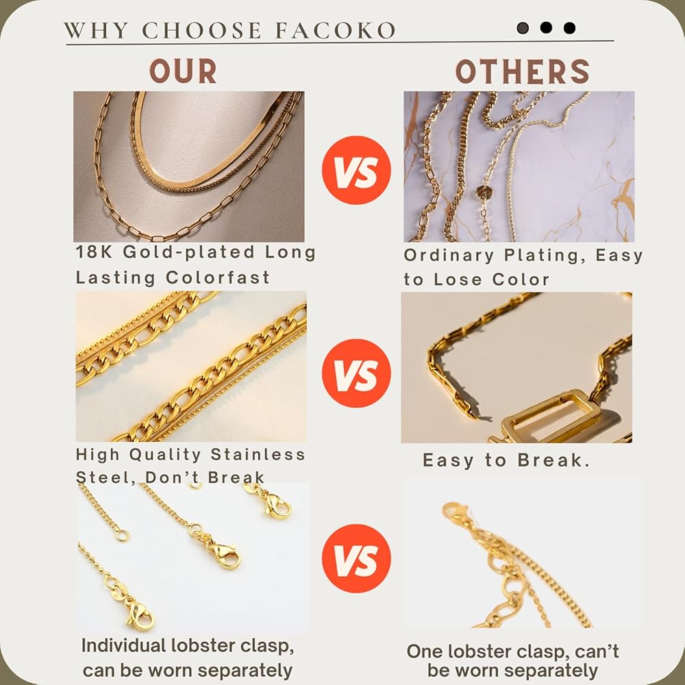 【Gold Necklaces for Women】FACOKO gold necklace set length is 15.7"/18"/19.6"(+2" extender chain) as a layered necklace, simple and elegant,the gold layering necklaces can be free to matching your preferences,you can wear them together or separately.