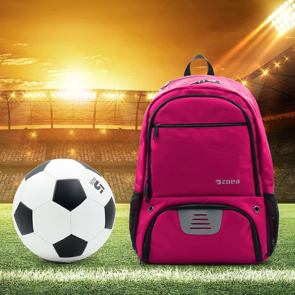Large Capacity - ZOEA Soccer Bag Backpack Designed with front ball compartment is perfect for carrying a soccer ball, volleyball, basketball, or football.Can carry one soccer ball and one basketball at the same time and put all of your sports equipments.The bottom compartment is vented to carry your cleats or shoes.