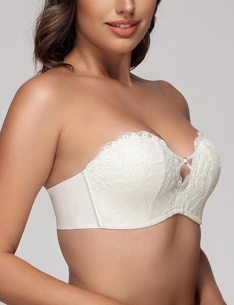 Strapless lace bra features sexy floral lace, enhanced your charming look.