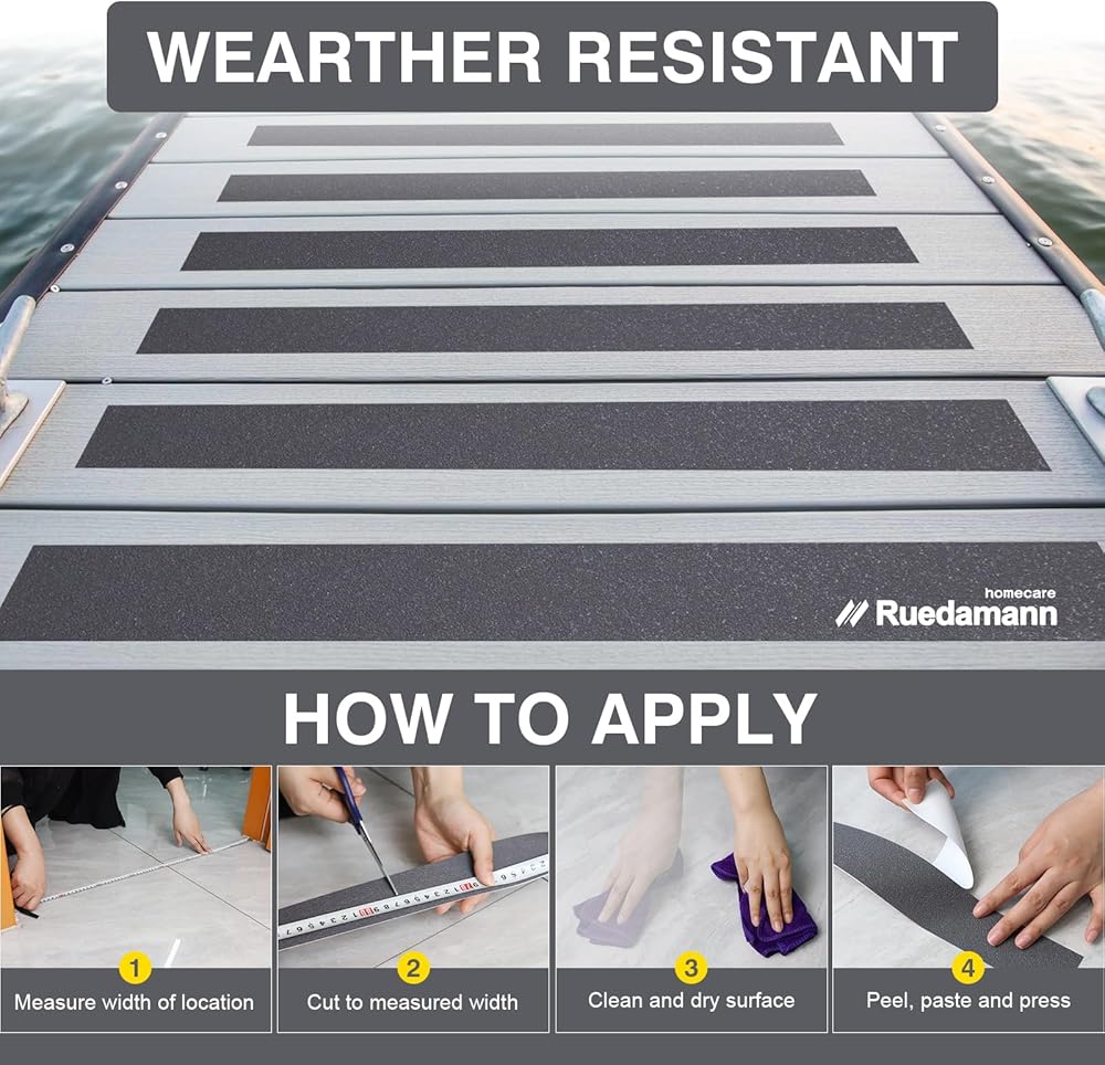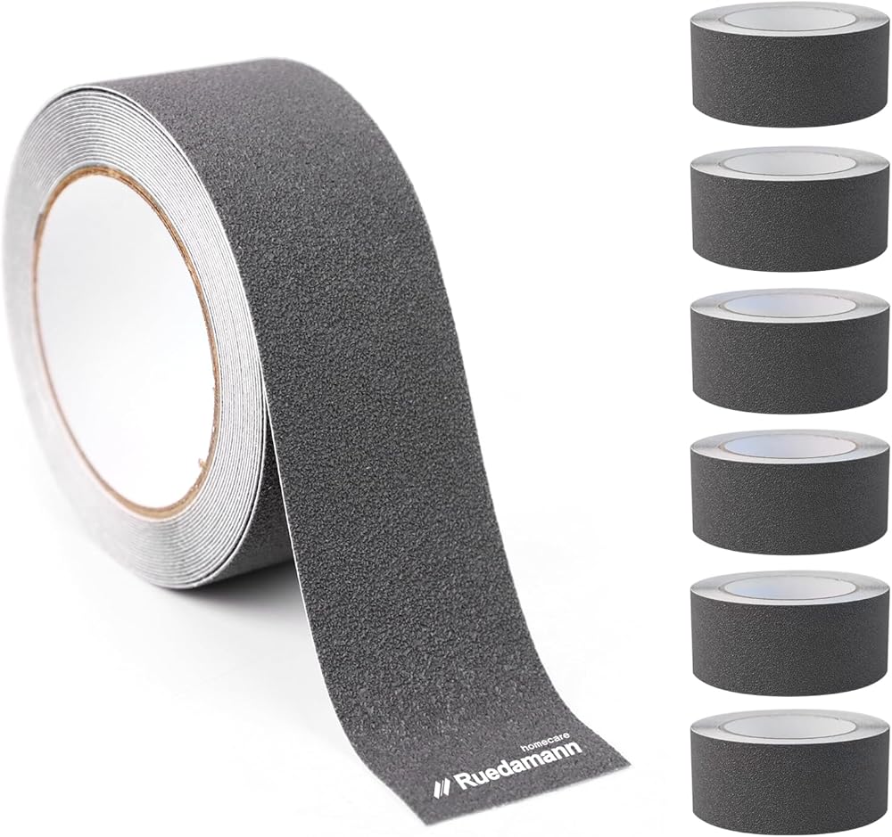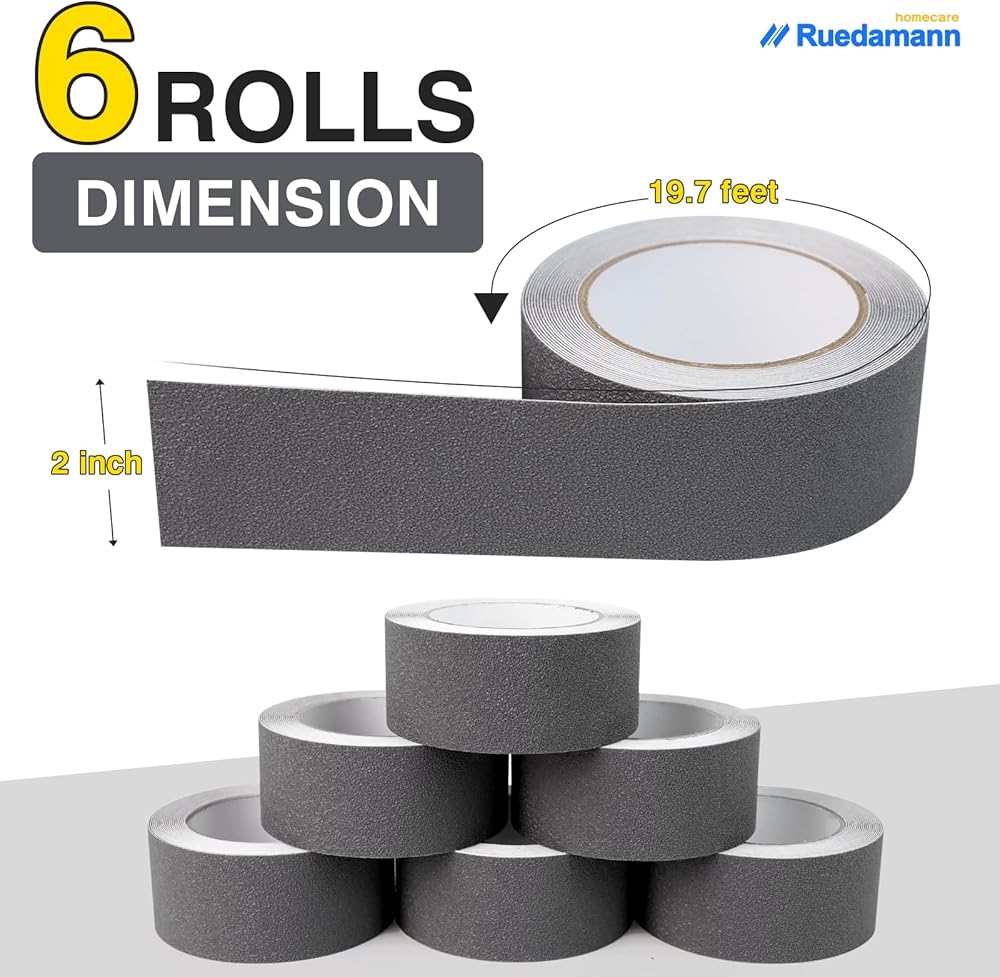Ruedamann Anti Slip Tape, 6 Pack, 2 Inch × 19.7 Feet, High Traction Water-Resistant Grip Tape Roll for Outdoor Indoor, Friction Safety Adhesive Stripe for Stair Steps Treads, Grey