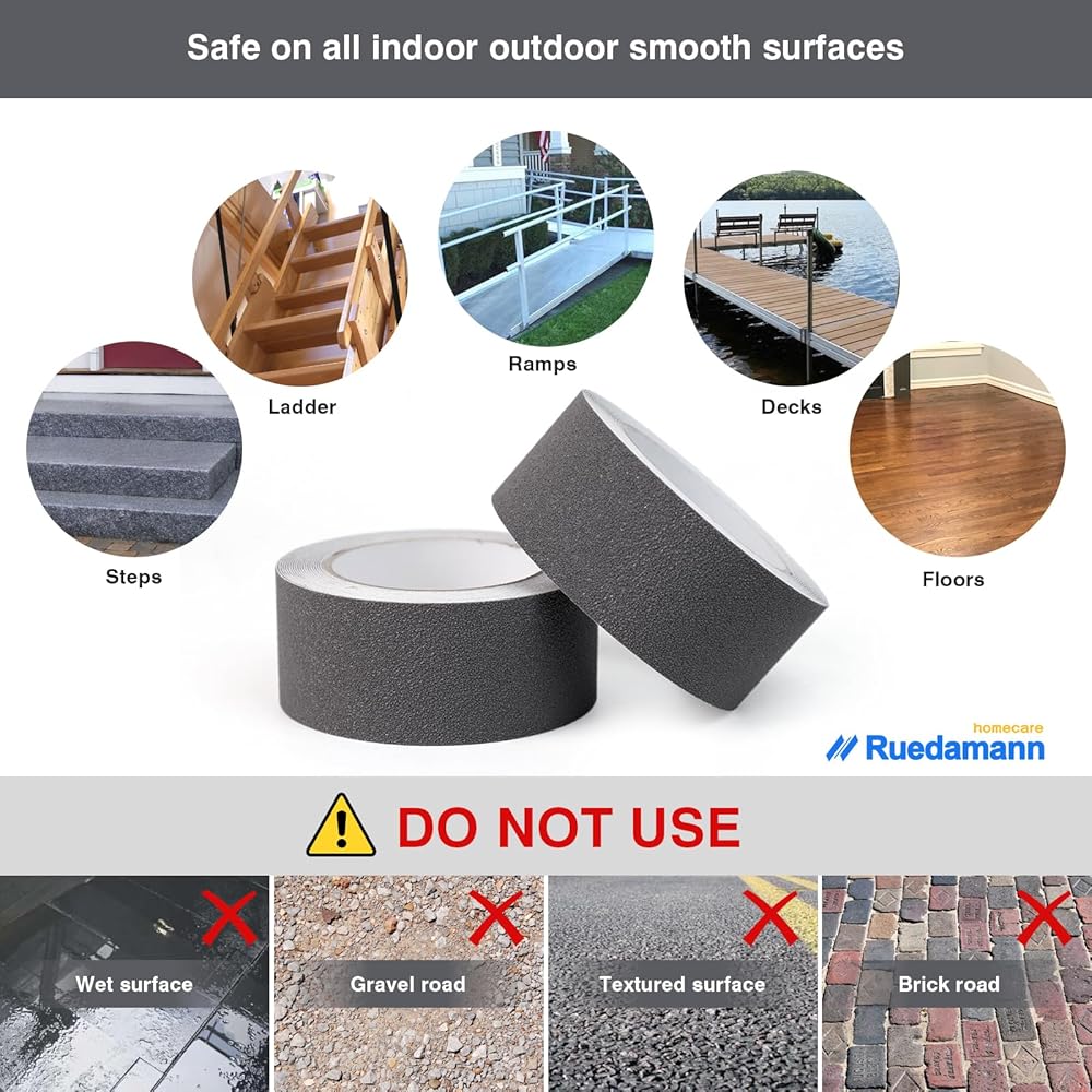 【Multi-Purpose Use】Suitable for indoor and outdoor uses. It can be used as step stair treads, applied to any smooth surface stairs which are made of hardwood, laminate, marble, tiles, glass and etc. Or uesd on floors, entryways, walkways, ladders, decks, ramps and equipment.