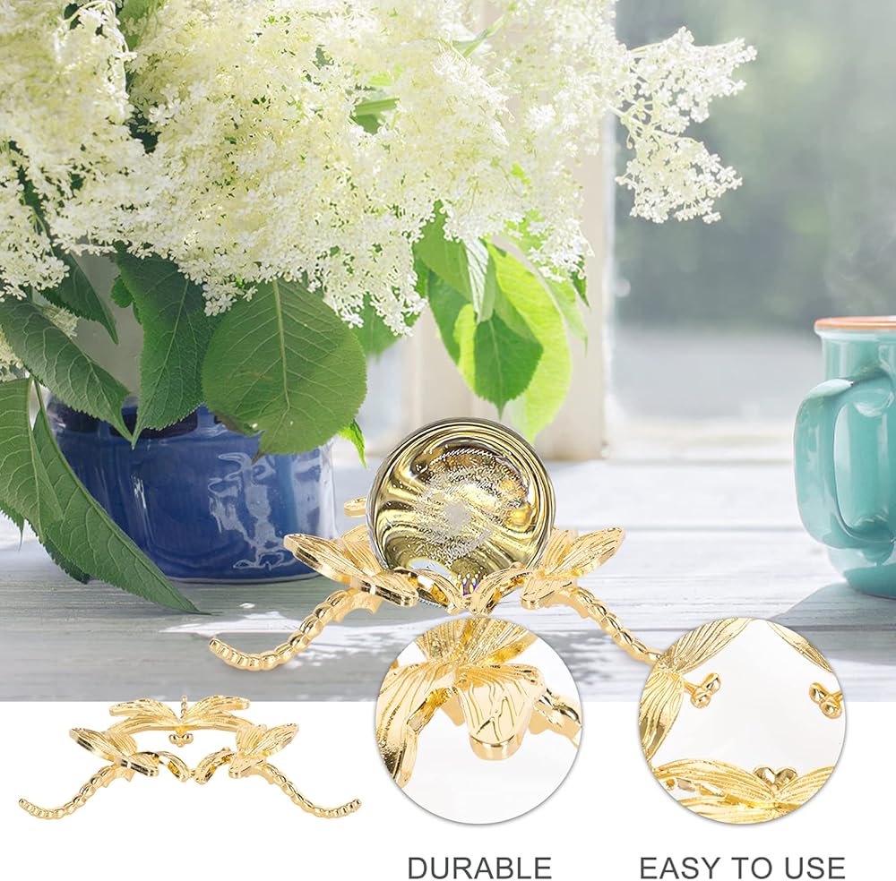 Tofficu Golden Dragonfly Shape Crystal Ball Holder - Metal Desktop Display Stand for Globes, Rocks, Crystals, Baseballs, Tennis Balls, 4.72 Inch Sphere Holder