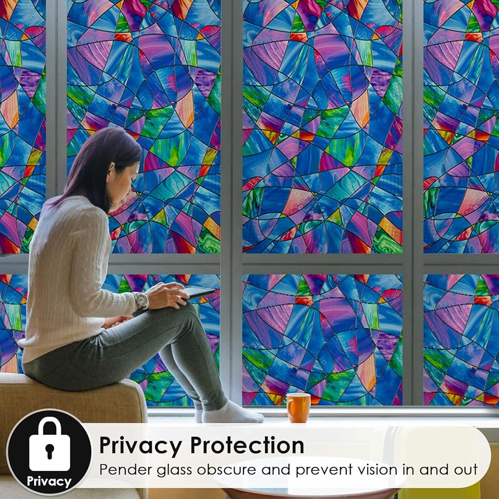 غشاء نافذة من الزجاج الملون ثلاثي الأبعاد فاخر من DKTIE مع أدوات التثبيت، غشاء نافذة للخصوصية ليلاً ونهارًا، لا يوجد غراء ثابت مقاوم للماء، سهل التنظيف، 16.9 بوصة × 39.3 بوصة، A