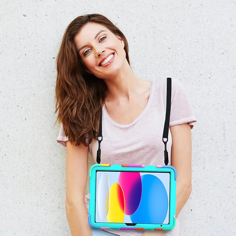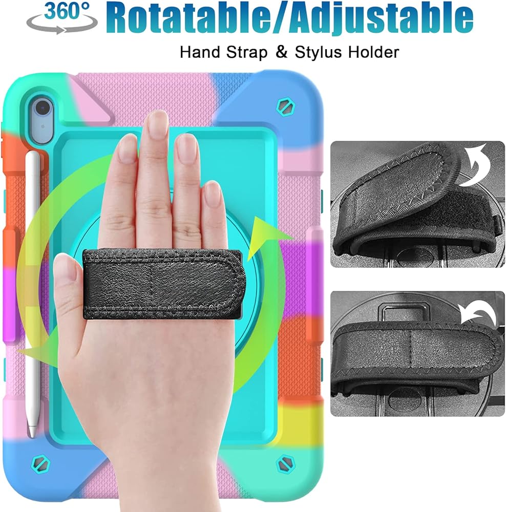 ⭐️【ADJUSTABLE HAND & SHOULDER STRAP】With the adjustable handle on the back, you can hold your iPad easily with single hand, and let your other hand free do other things. The shoulder strap supports a more convenient way of carrying your iPad 10th generation when you are outdoors.