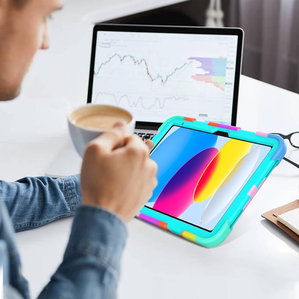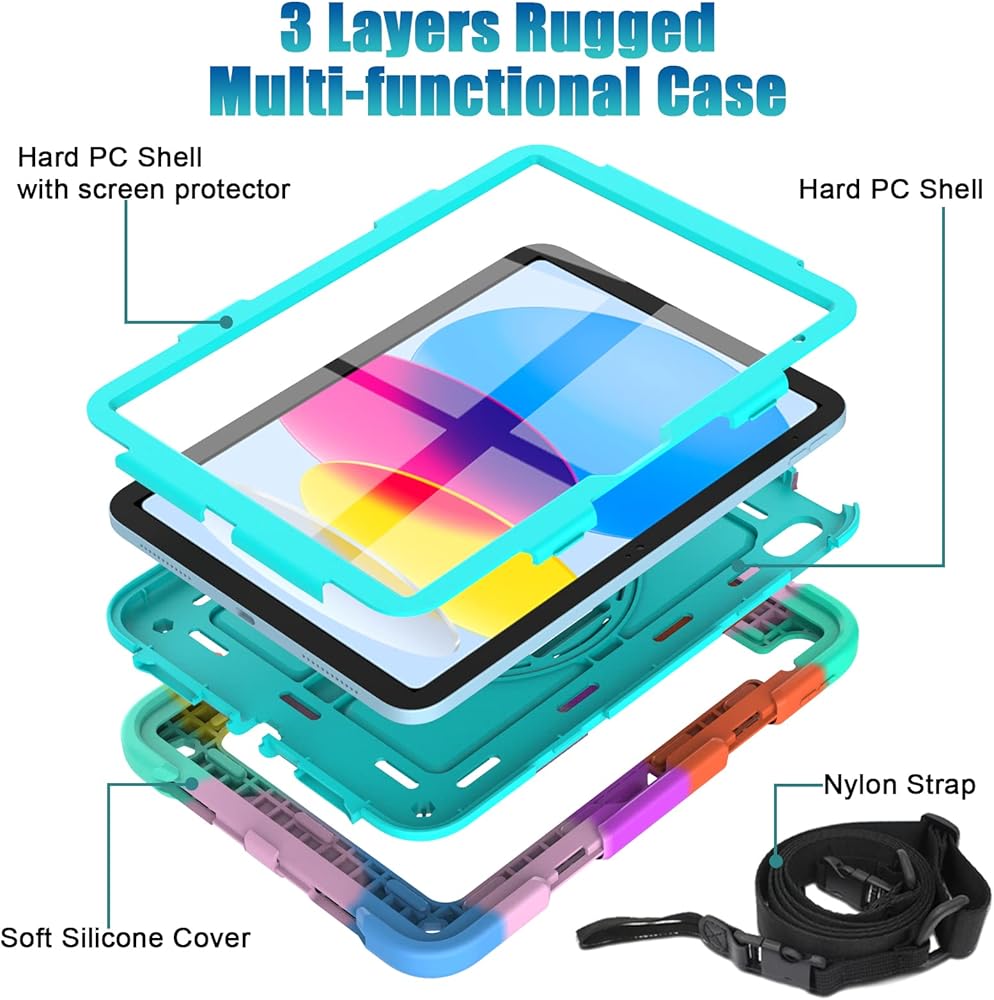 ⭐️【3-LAYERS PROTECTION】Heavy duty rugged case, 2 layers hard pc cover and 1 layer silicone cover. 3-in-1 shockproof iPad 10.9 Case 2022, provides protection against accidental drops dust and scratches.