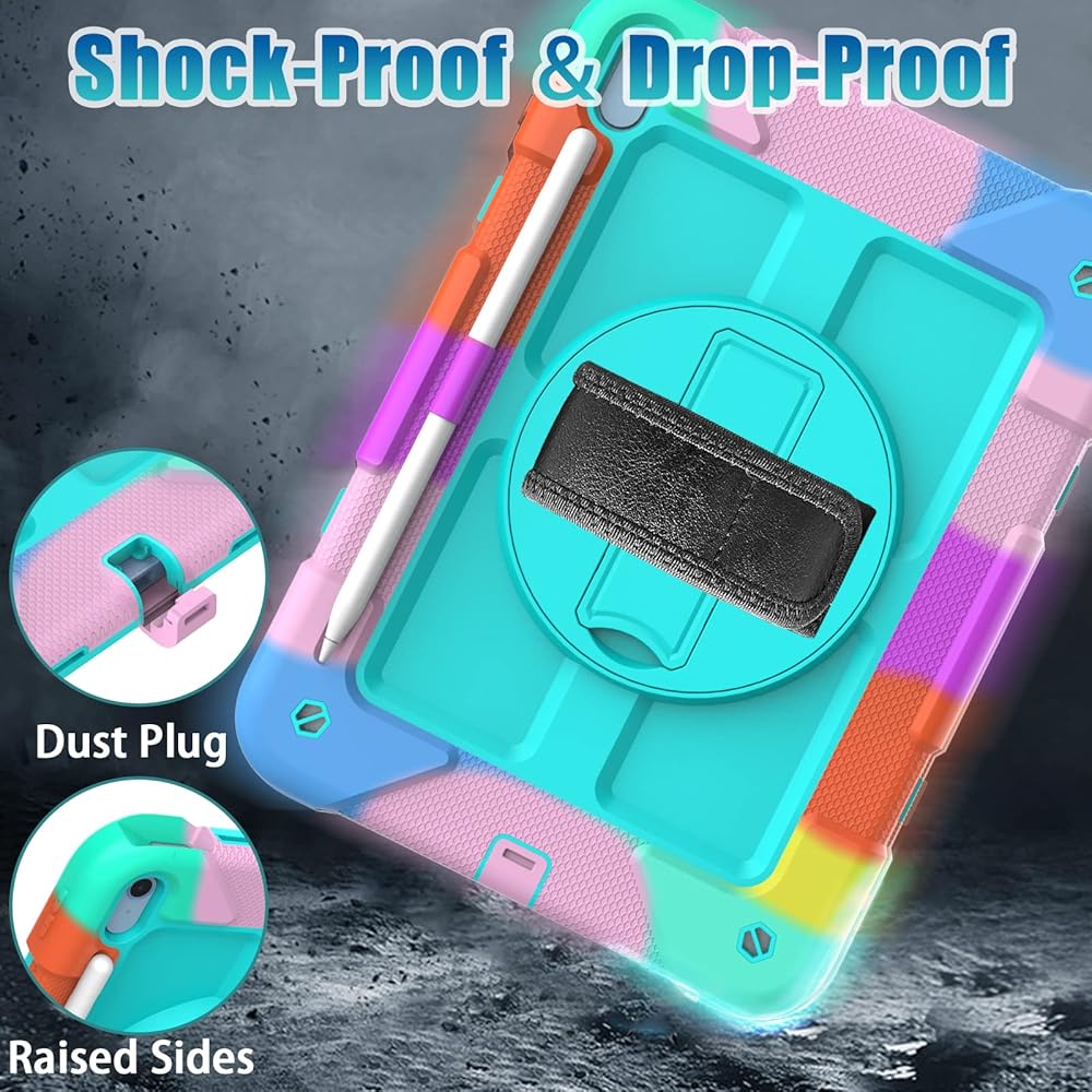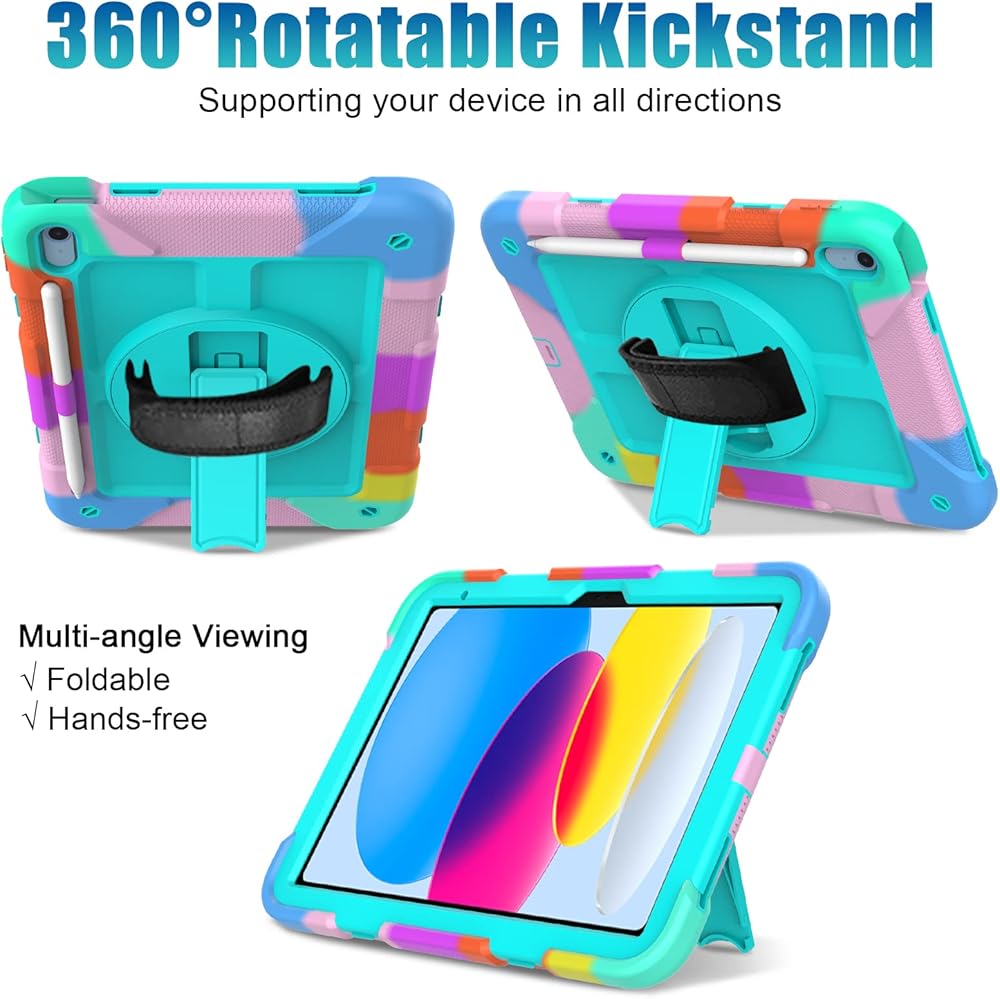 ⭐️【360° ROTATING KICKSTAND】360° rotating structure supports multi-angle viewing. Soft rotating handle strap gives you a better grip on your iPad 10th generation for travelling,working or gaming. Ideal for kids stay-at-home online education.