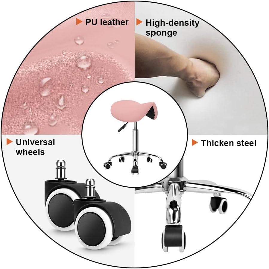 - Comfortable:This Saddle stools with wheels design for extra comfort,can sit for a long time