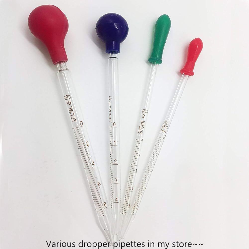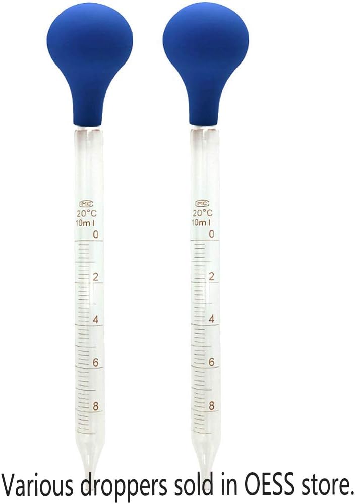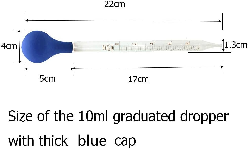- Package included:4pcs 10ml thick glass graduated dropper pipettes with blue rubber caps.