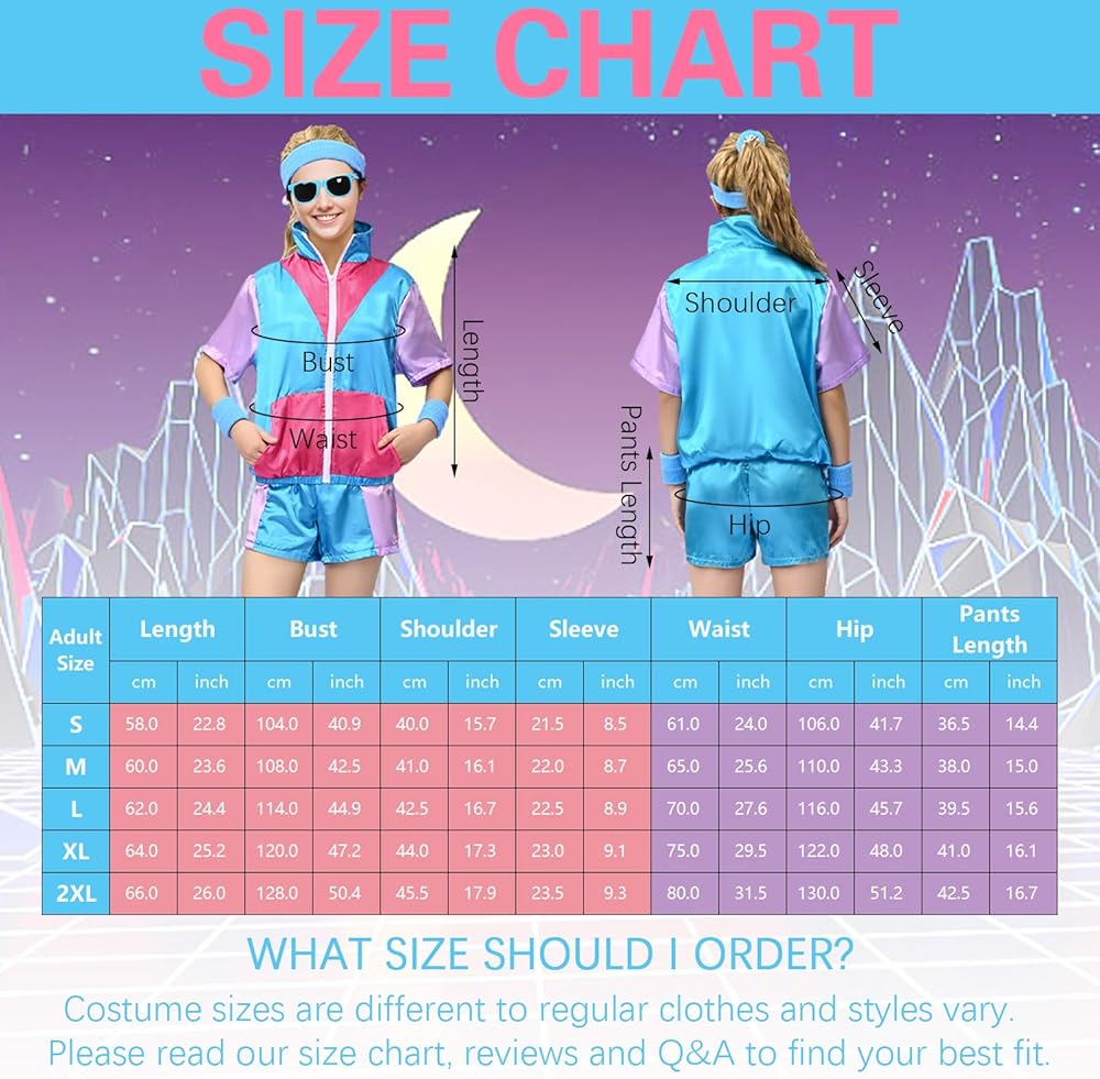 [8090's Colorful Tracksuit Costume]: This Sweatshirt is available in colorful neon blue and Hawaiian style, 2 different colors of the suit will make you distinctive, lively and embrace the 80's nostalgia at the party merchants.