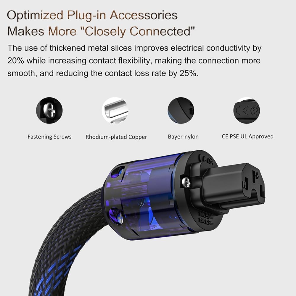 【Wide Compatibility】- This HIFI power cord can work with power filters, turntables, amplifiers, CD players, DAC, and any hifi components. It is an ideal Audiophile power cable that reduces noise and enhances the entire audio system with wider dynamics.
