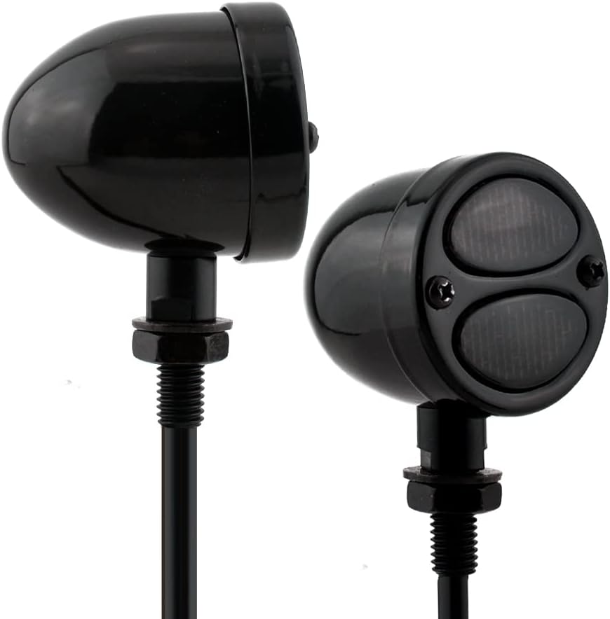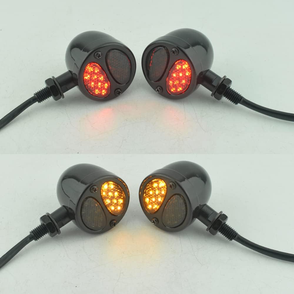 This Steel Indicators can be used as front / rear turn signals or daytime running lights and brake light. Amber light for turn signal, and Red light for running lights; Deep red light for brake light. And double Grill Lens turn signal lights stylish, nice and attractive, add features to your motorcycle, give your motorcycle a distinctive looking.