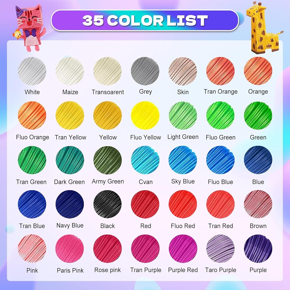 25 Bright Colors: This 3d pen refills includes 25 vibrant and eye-catching colors, 32.8 ft per Color Total 820 ft, ensuring that your 3D drawings and art projects come to life. Whether you are a 3D printing enthusiast or a DIY artist, these filament refills make an excellent addition to your creative toolbox.