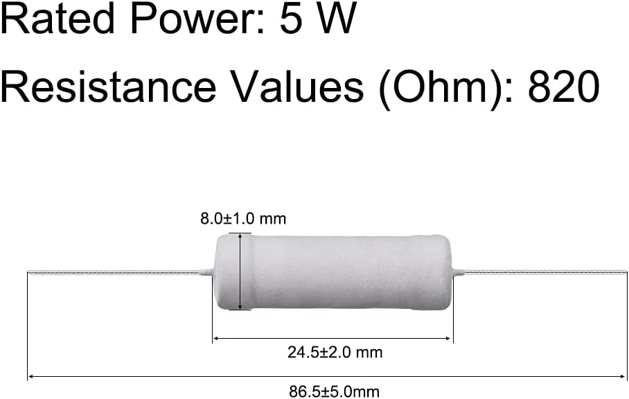 uxcell 10Pcs 820 Ohm Resistor, 5W 5% Tolerance Metal Oxide Film Resistors, Axial Lead, Flame Proof for DIY Electronic Projects and Experiments