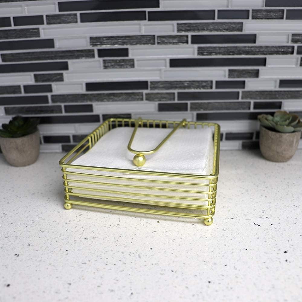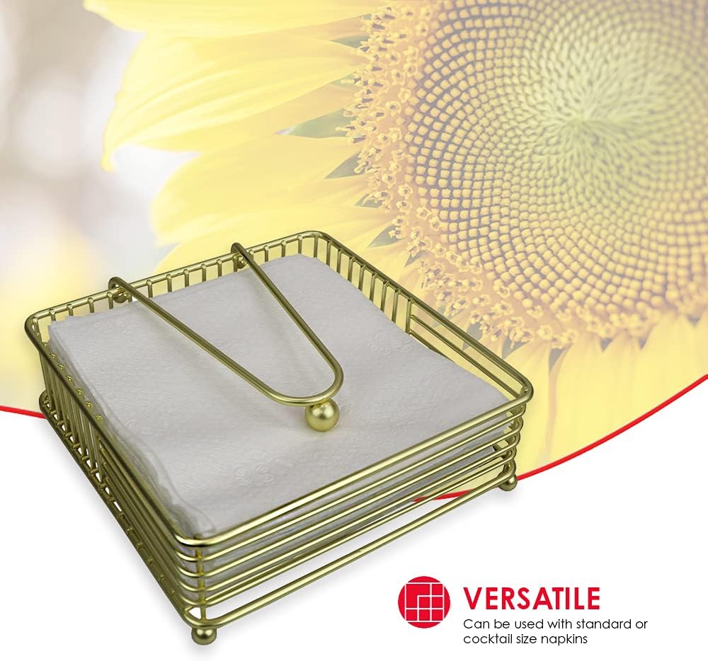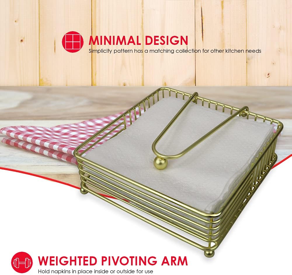 Home Basics Halo Steel Napkin Holder with Weighted Pivoted Arm, 7" x 7" x 2.5", Gold