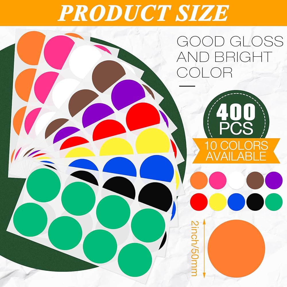 Color sticker pack: you can get 400 pieces round color stickers in 10 different colors, each color has 40 stickers; They are easy to tear off and stick, have good adhesiveness, can be firmly adhered to most surfaces; Moreover, you can also use your fingers to enjoy the comfortable matte surface and rounded corners of each round color sticker