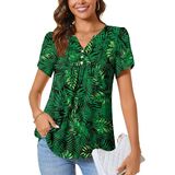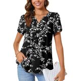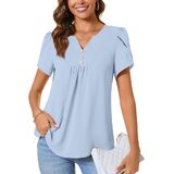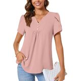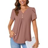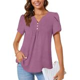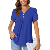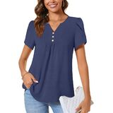 CATHY Women's Petal Short Sleeve Tunic Tops Dressy Summer Blouses V Neck Button Cute Shirts