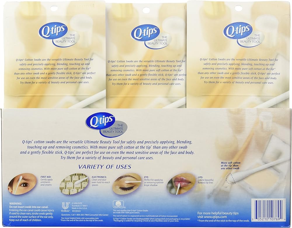 Q-tips cotton swabs have a wide variety of uses including beauty, applying/removing/touching-up cosmetics, household cleaning, arts & crafts, pet care, baby care, cleaning collectibles, painting, car detailing, model building, first aid, and more! Use Q-tips cotton swabs for all your beauty needs. Get every detail right, from your nails, to your lips, to your face. Perfect for touching up nail polish, lipstick & lip gloss, eye liner, and DIY projects like manicures. Q-tips cotton swabs are great for cleaning electronics, dusting between the keys on computer keyboards, and cleaning out phone ports. They can also help keep you safe from battery corrosion on motherboards and hard drives. Q-tips are handy for arts & crafts projects. DIY with Q-tips, apply glue to models, build your own creations, or paint without brushes. Q-tips are great for adult lifehacks too, like DIY nail art, or getting zippers unstuck. Q-tips are delicate enough for sensitive jobs like baby & pet care. Clean around your newborn's belly button, between your baby's toes, or around your baby's nose. Pets need gentle care too – don't forget your cats & dogs! Q-tips are ideal for cleaning hard to reach places. Use them to dust air vents, detail your car, or to clean ceramics & pottery. Q-tips are delicate enough for cleaning collectibles and jewelry.