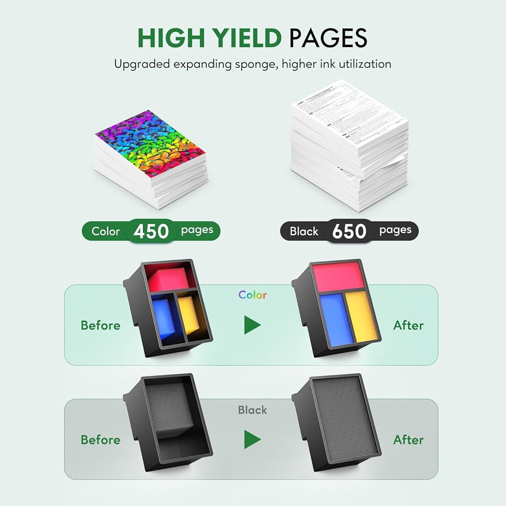 Package Contents:1 x 64XL High Page Yield: Up to 650 pages per black ink cartridge for 64XL and 450 pages per color cartridge replacement (5% coverage)., 1 x 64XL Tri-color, 1 x User Guide