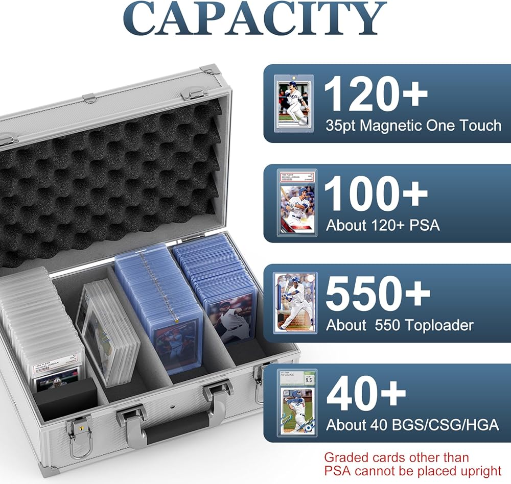 💼[Capacity of Trading Card case]: The toploaders storage case, equipped with 3 foam divider, It can holds up to 120 magnetic holder (35pt), 500+ Toploaders, 2500+ sleeved trading cards.
