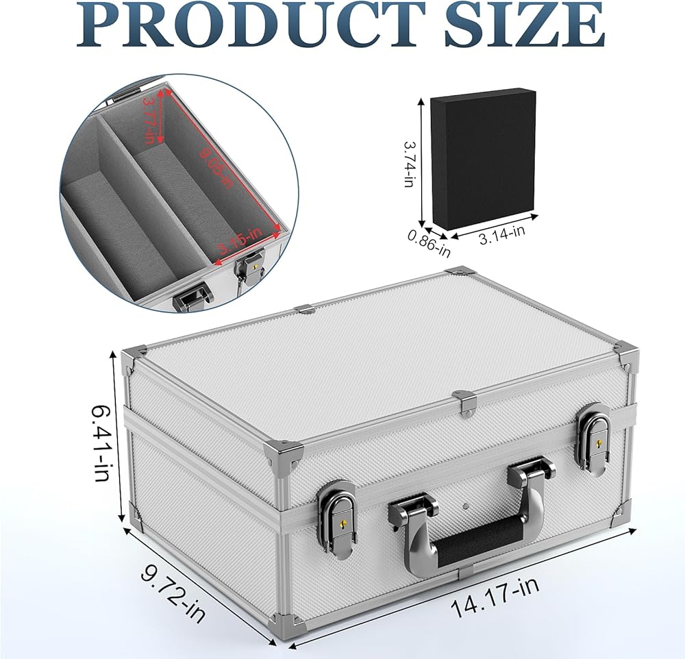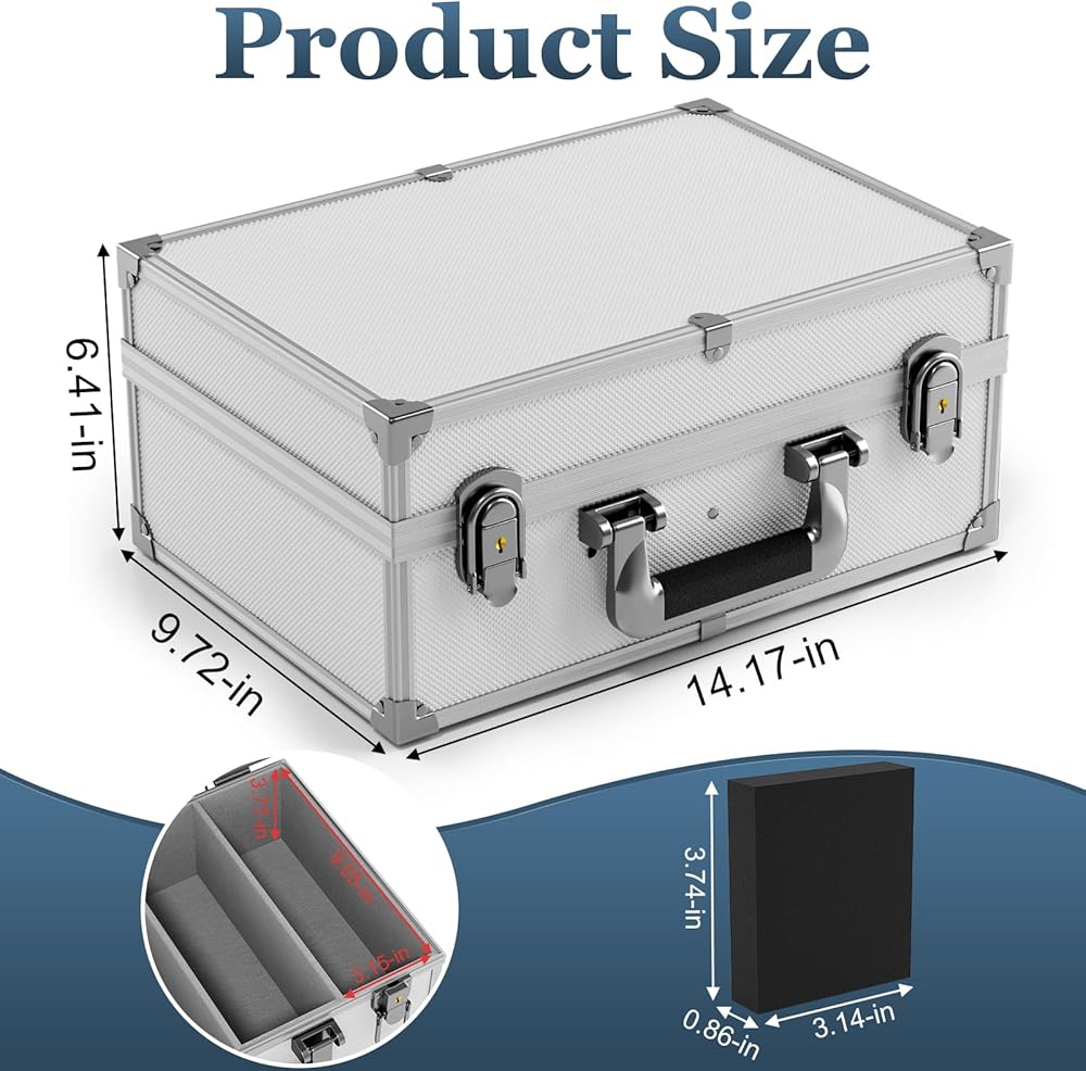 💼[SIZE of Card Storage Box]: The trading card case contains 12 foam slots , each 3.74 x 3.35 x 3.15 in. Exterior Dimension: 16.3 x 13.2 x 5.3 in.