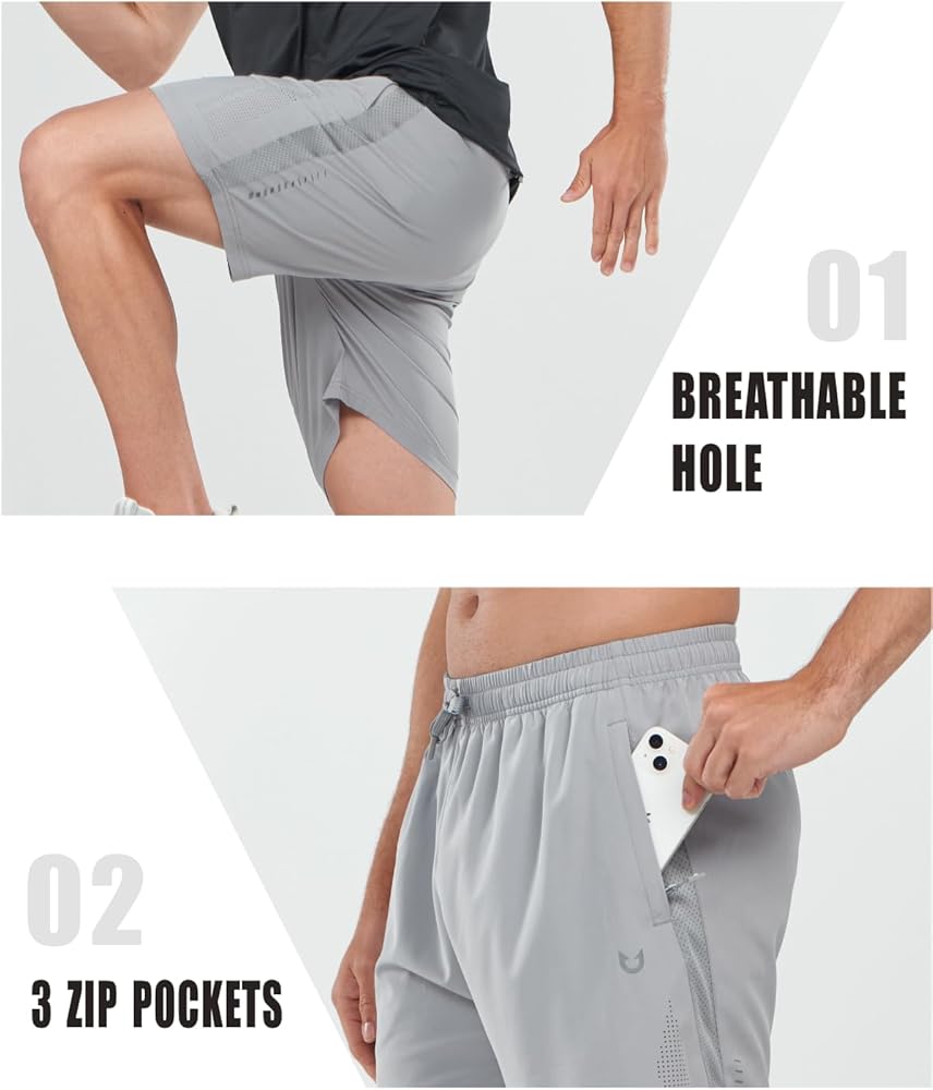 Zipper Pockets:These men's shorts for active wear offer convenient storage with two side and one back zippered pockets, ensuring items stay secure during activities.