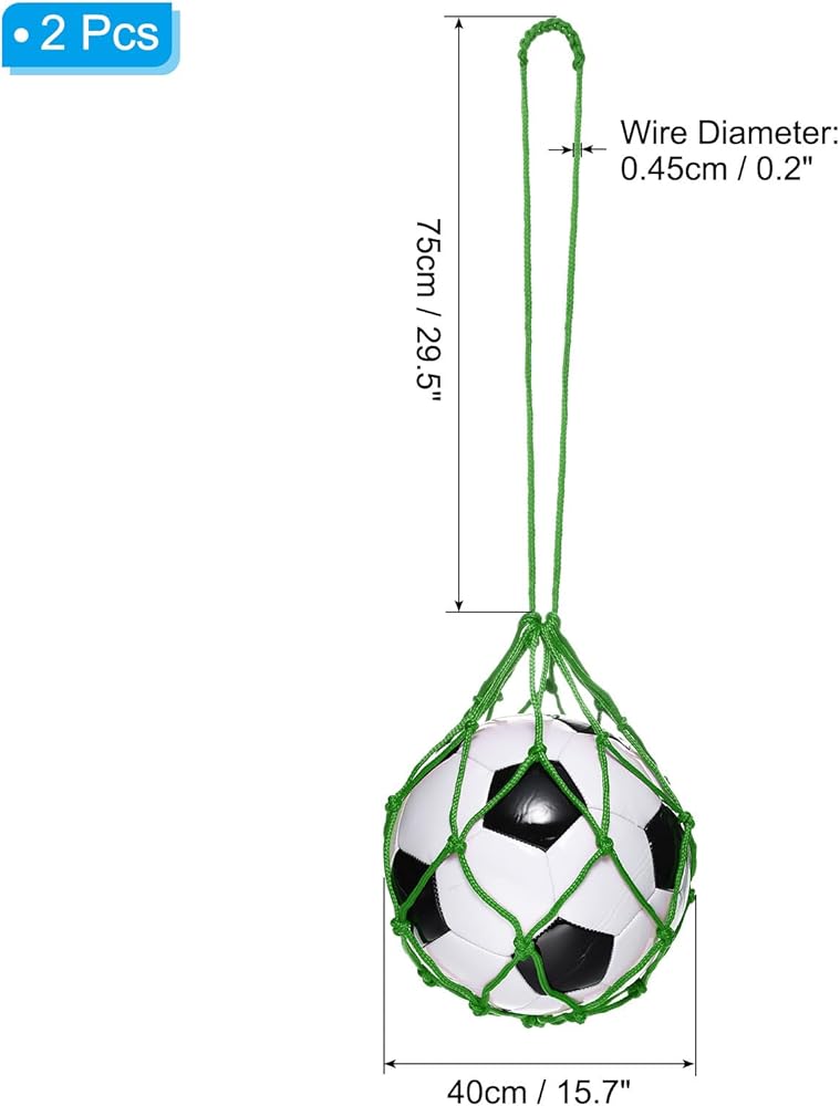 Color: Black; Material: Polypropylene; The Cord Length: 75 cm/ 29.5 inch; Mesh Bag Net Length 40 cm/ 15.7 inch; Mesh Size 9 cm/ 3.5 inch; Wire Diameter 0.45 cm/ 0.2 inch; Size: fit ball size 3, 4 and 5; Package List: 2 x Soccer Kick Practice Net